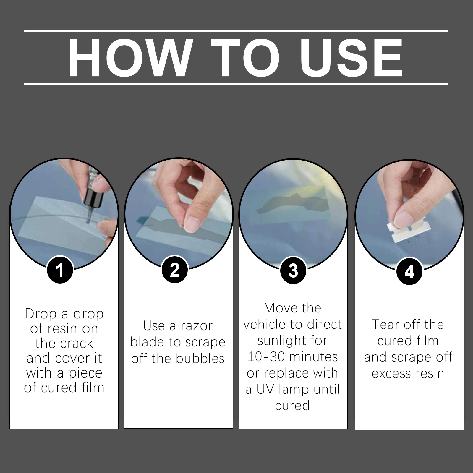 我们的汽车挡风玻璃裂缝护理液含有UV胶。它可以使修复表面光滑无划痕。防止裂纹扩散,延长玻璃使用寿命。它的使用方法很简单:1.在裂缝上滴一滴树脂,用一片固化膜覆盖;2.用刀片刮掉气泡。3.将车辆移到阳光直射处10-30分钟,或更换紫外线灯,直到固化。4.撕下固化膜,刮掉多余的树脂。环氧树脂组件确保修复后坚固的结构。胶粘剂粘接牢固,保证修复件的稳定性。