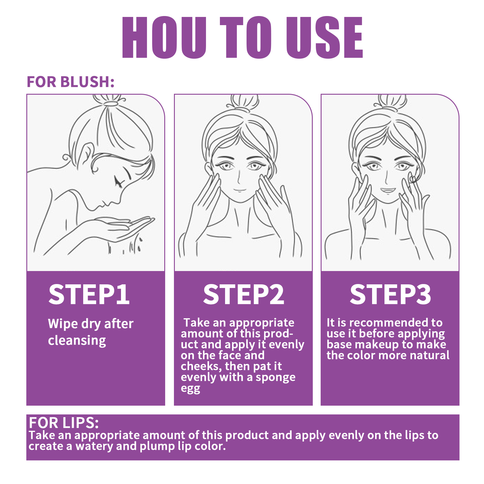 我们的多用腮红唇霜含有透明质酸、椰子油、草莓提取物。它可以有效滋养和保护唇部肌肤,淡化唇纹,修护唇肌,提亮唇色,减缓唇部的反复脱皮,改善唇部暗沉。它的使用方法很简单:首先洁面后擦干,取适量本品均匀涂抹于面部和脸颊,然后轻拍,均匀在脸上按摩,建议在上底妆前使用,让颜色更自然,使用后有助于促使唇部饱满,改善干燥脱皮,滋润嘴唇,提亮唇色,解除唇部干燥肌肤的高锁水力,保持唇部光滑嫩滑。