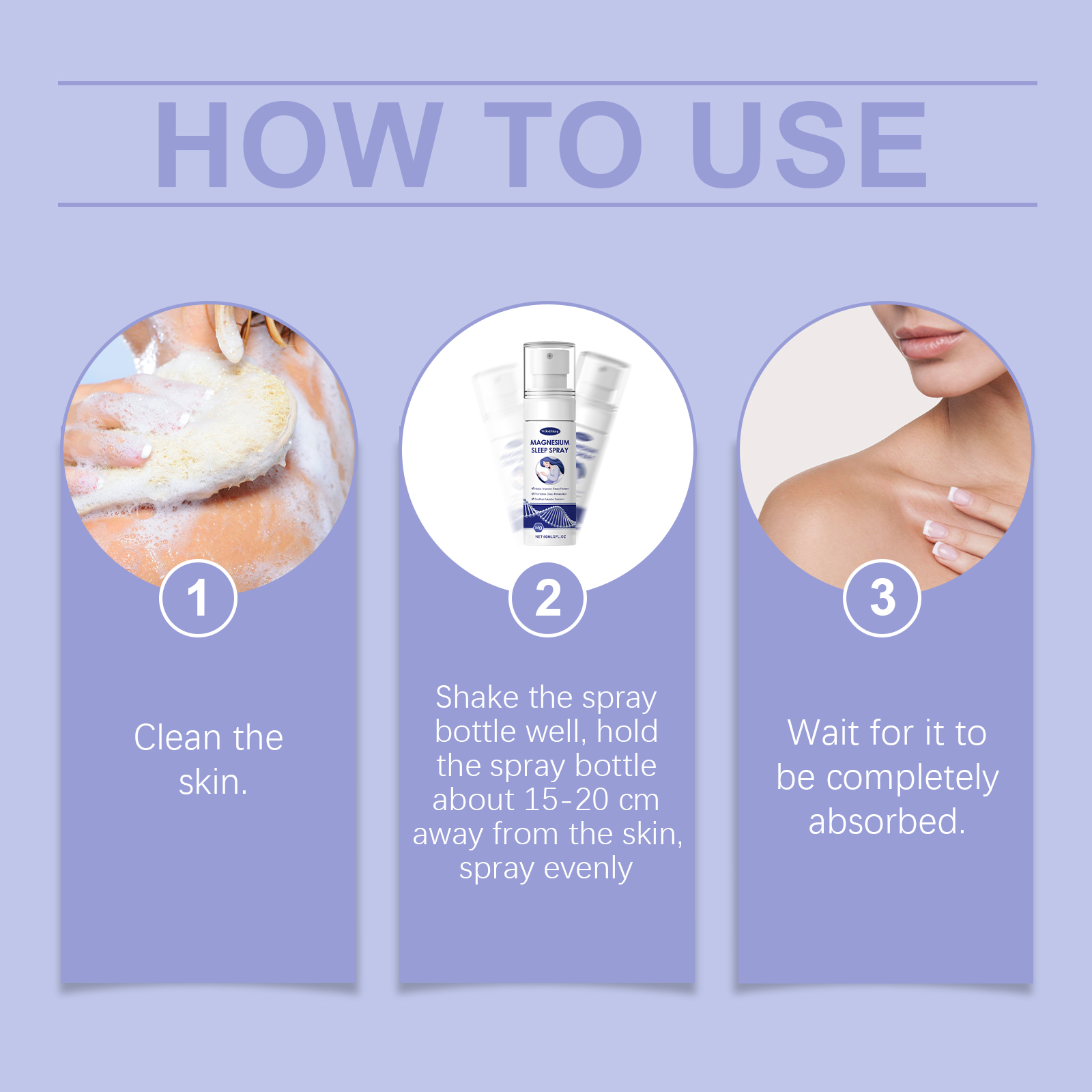 我们的镁油喷雾含有薰衣草提取物、乳酸镁、椰子油。它可以有助于放松神经,平静情绪。补充必需的矿物质,促进身心放松。减少焦虑,帮助稳定情绪。它的使用方法很简单:1.清洁皮肤。2.将喷雾瓶摇匀,离皮肤约15-20厘米,均匀喷洒;3.等它完全被吸收。一缕芬芳会把心灵带到一个安静的地方。释放白天积累的压力,放松心灵。