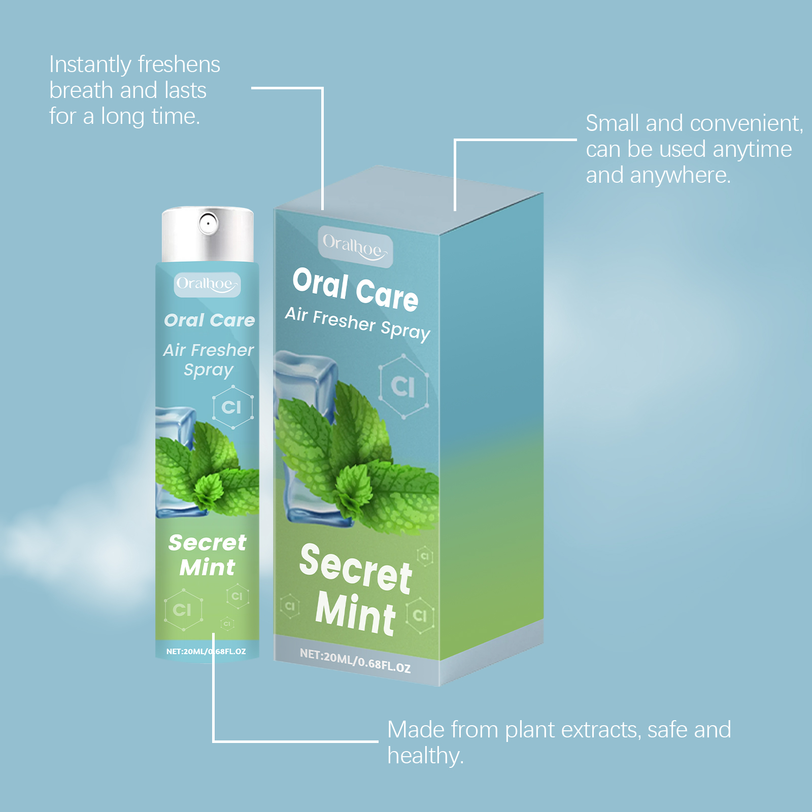Oralhoe Secret Mint Oral Care Air Fresher Spray, Remove Coffee Stains And Whiten For Healthy Teeth