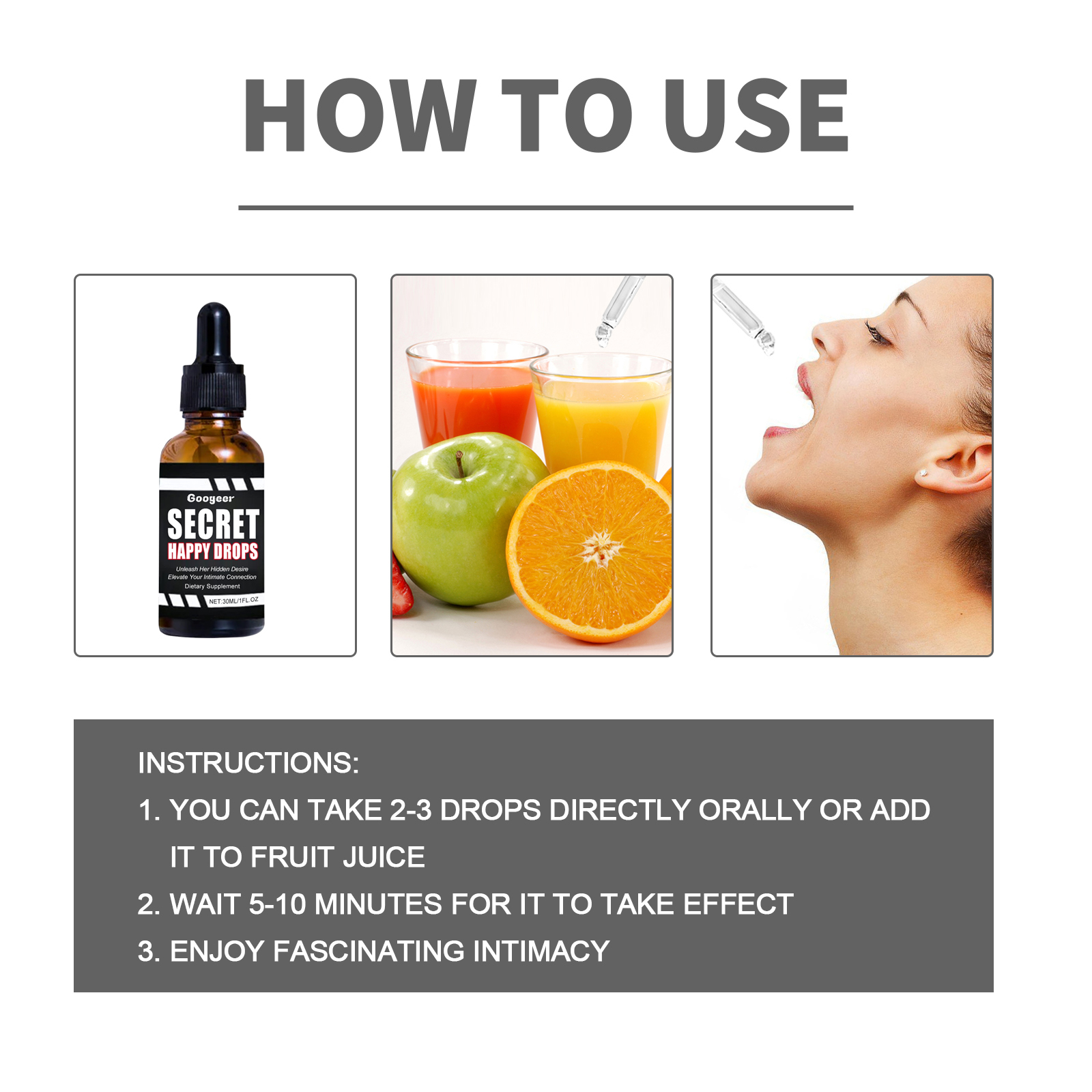 我们的秘密快乐滴剂 含有巴西榥榥木提取物、刺蒺藜提取物。它可以增进伴侣之间的亲密感,有助于整体健康和身体的平衡,以帮助增加兴奋。它的使用方法很简单:1.您可以采取2-3滴直接口服或添加到果汁。2.等待5-10分钟使其生效。3.享受迷人的亲密。并且可以提高身体能量,增强亲密关系的体验,使双方更加愉快。