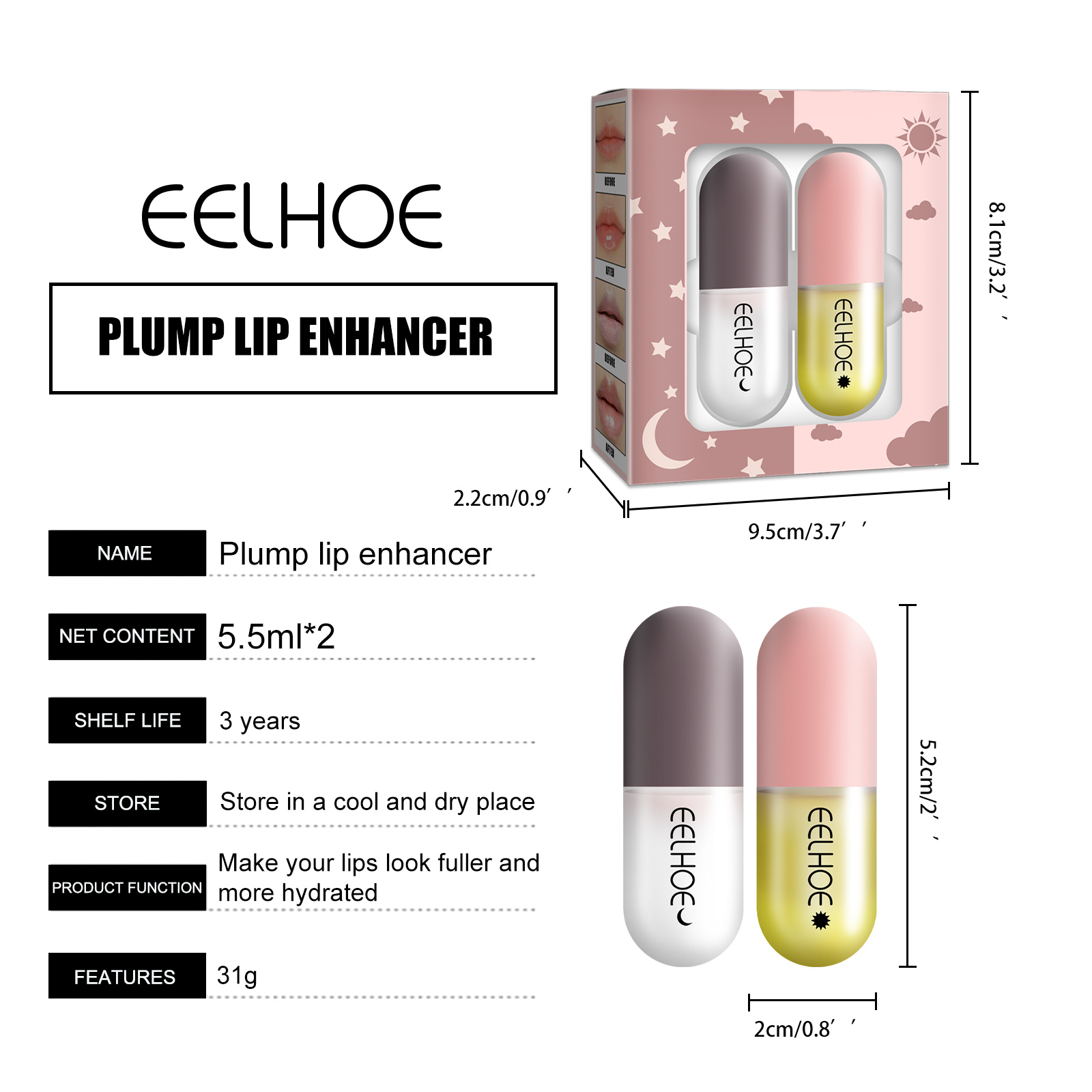 EELHOE Day And Night Lip Moisturizing Capsules Hydrate And Moisturize The Lips, Provide Elasticity And Plumpness, And Make The Lips Plump
