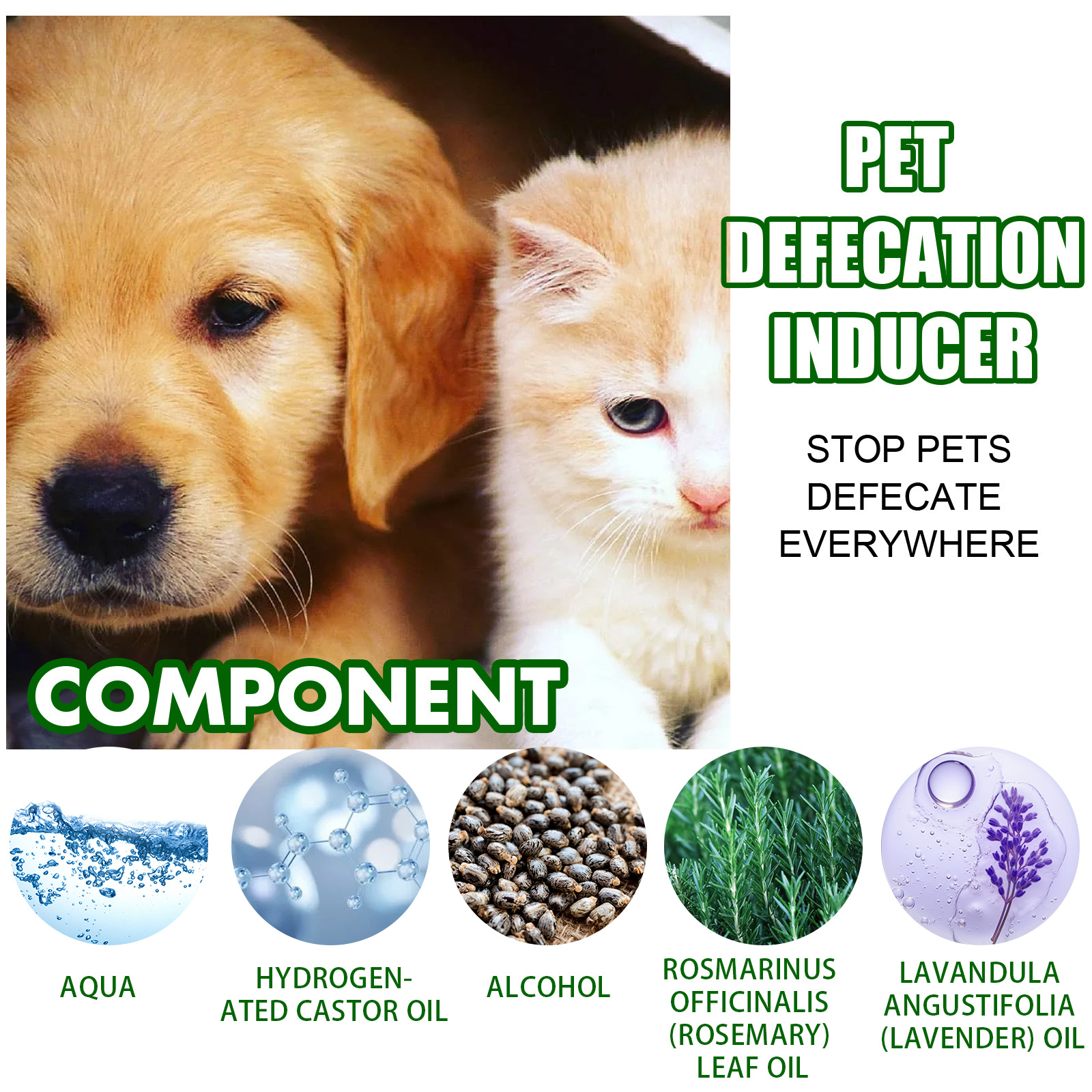 我们的宠物定位排便诱导剂含有氢化蓖麻油、迷迭香叶油、薰衣草油。它可以改掉宠物不良习惯,辅助如厕训练;有效缓解宠物的不稳定行为。它的使用方法很简单:1.在狗狗排便之前,将诱导液喷在你想让狗狗上厕所的地方或尿布所在的地方。让狗闻一下。几次之后,狗会产生条件反射,然后在有这种气味的地方排便。2.狗在规定的区域排便后,很容易教他用零食作为鼓励或语言。诱导剂作为一个标志。每次排便后,宠物会闻到自己的粪便,记住气味,然后去固定的地方进行排便。