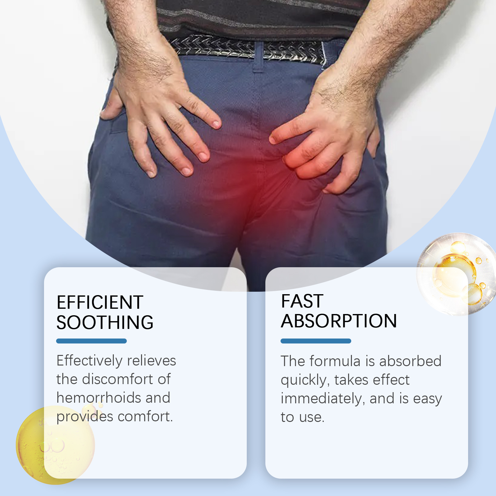 我们的肛部护理凝胶含有苦参根提取物、黄柏树皮提取物、蛇床子果提取物。它可以缓解不适,提高舒适度。支持健康和增强效果。温和、无刺激性、安全可靠。它的使用方法很简单:1. 清洁痔疮周围的皮肤,保持干燥;2. 取一管凝胶,打开开口,轻轻地把凝胶挤在痔疮上。肛部护理凝胶有效缓解痔疮不适,提供舒适感。配方吸收快,见效快,使用方便。