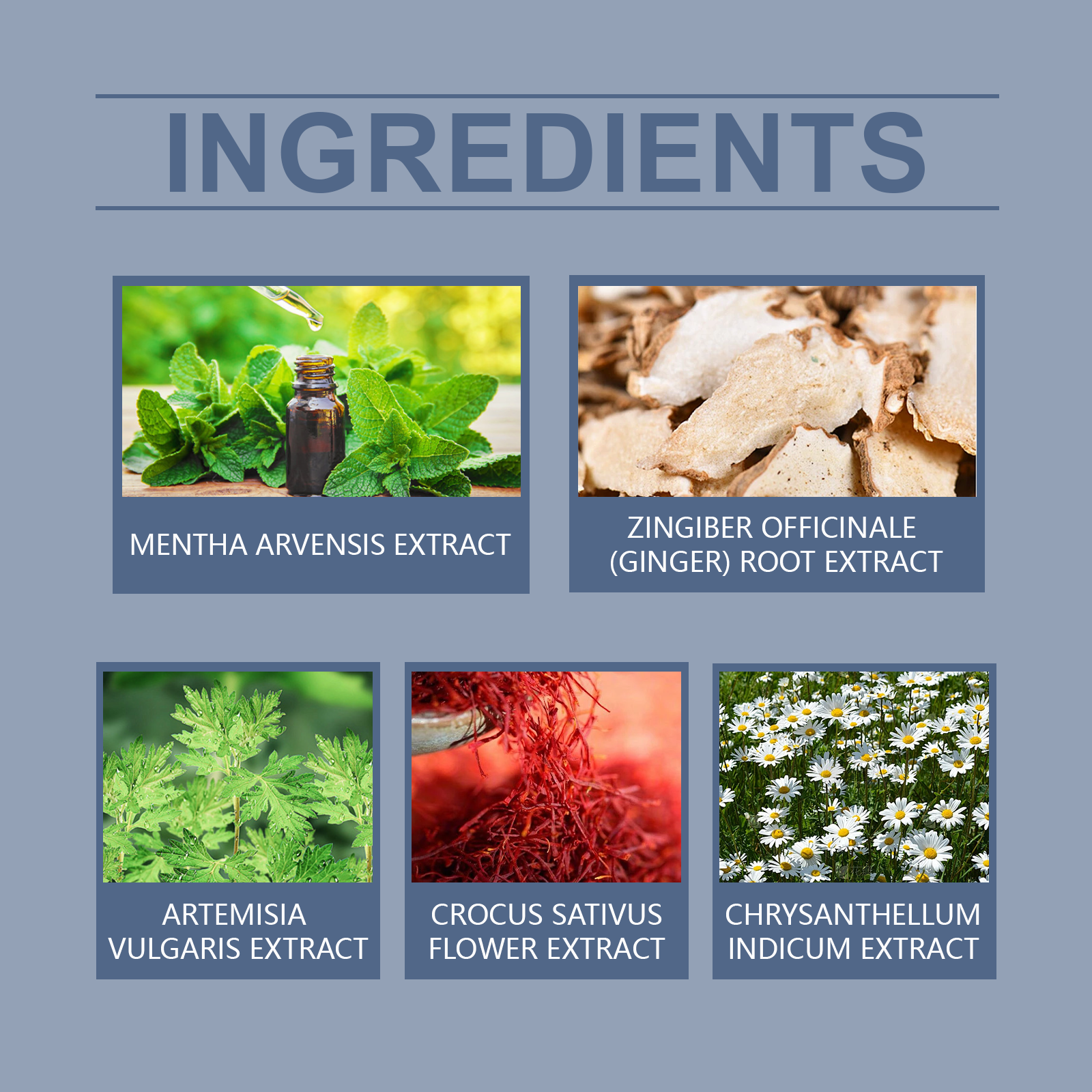 | 成分 | 艾蒿提取物、姜根提取物、藏红花提取物 |