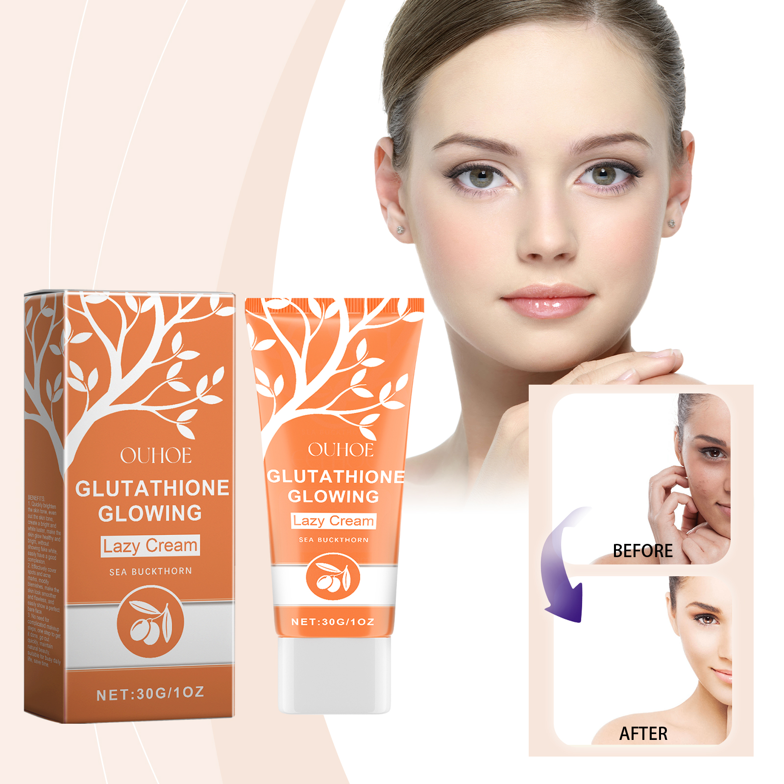 OUHOE Glutathione Glowing Lazy Cream, Fade Fine Lines Moisturizing And Brightening Concealer Long-Lasting Natural No Fake White Slacker Cream