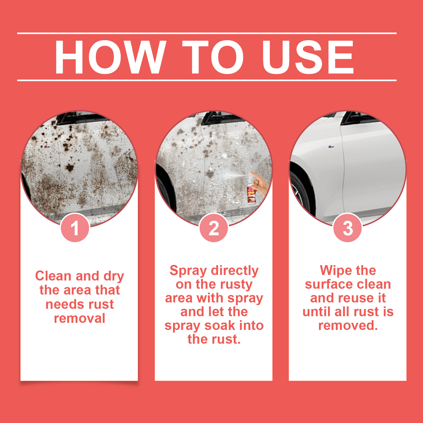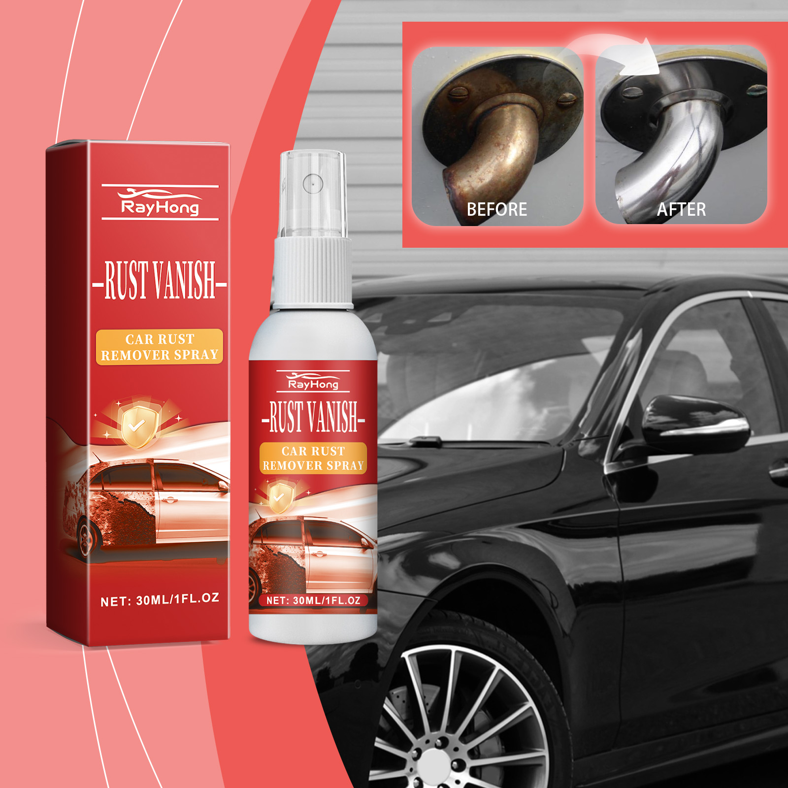 Rayhong Car Rust Remover Spray, Protective Paint Decontamination To Yellow Rust Removing Lasting Protection Efficient Fast Drying