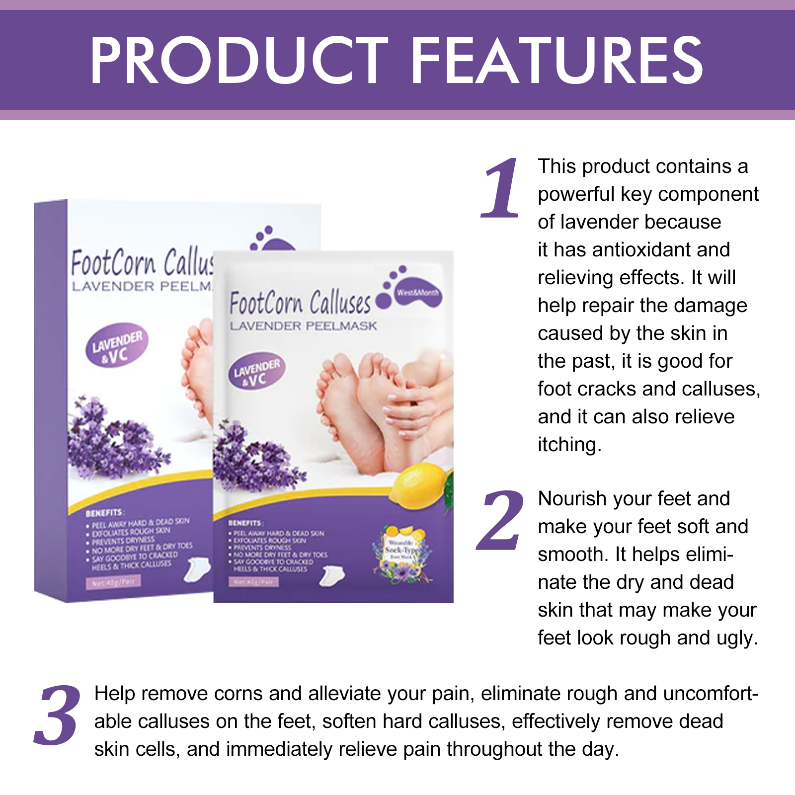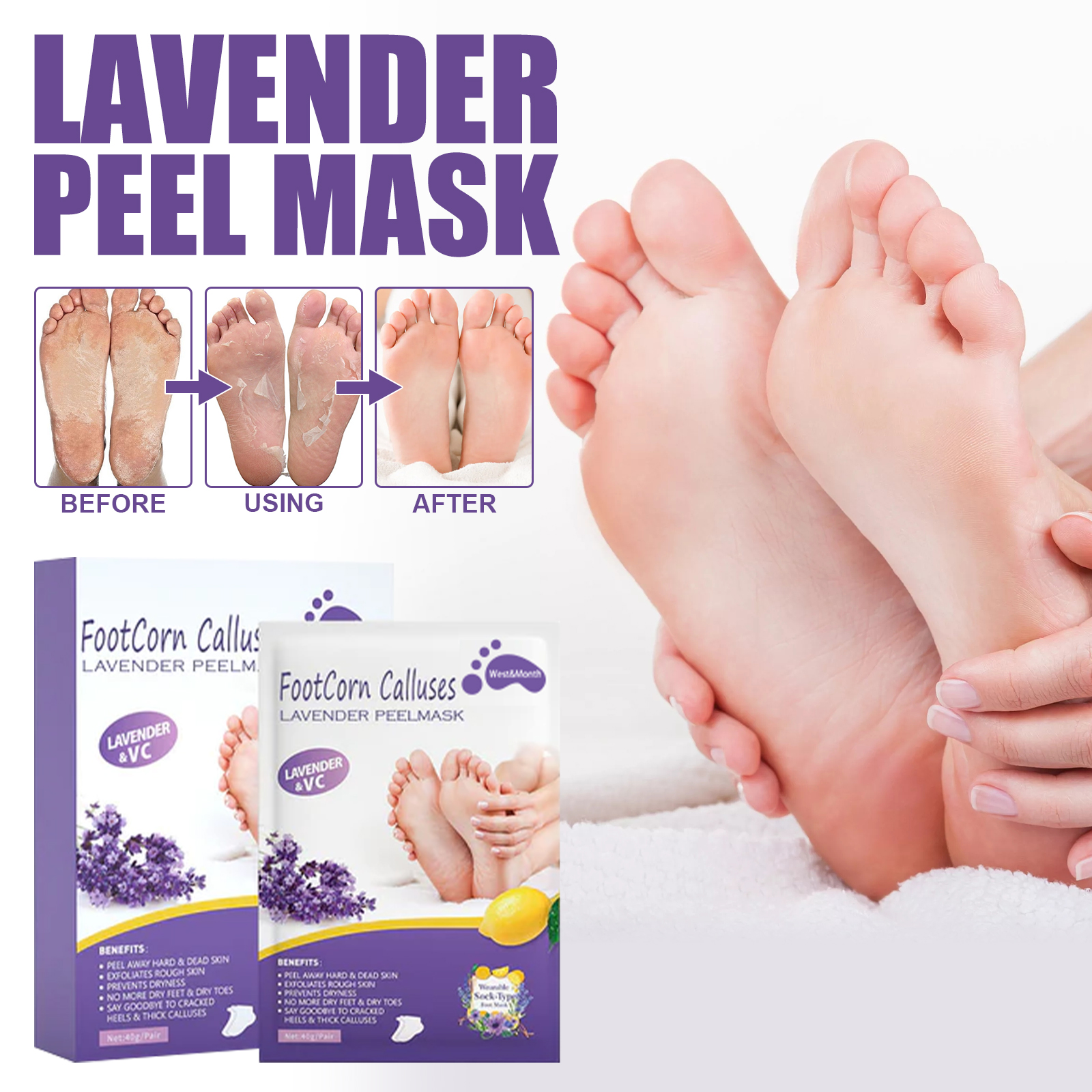 West&Month Lavender Peel Mask, Moisturizing Foot Cleansing Keratin Anti-cracking And Dead Skin Care Foot Mask