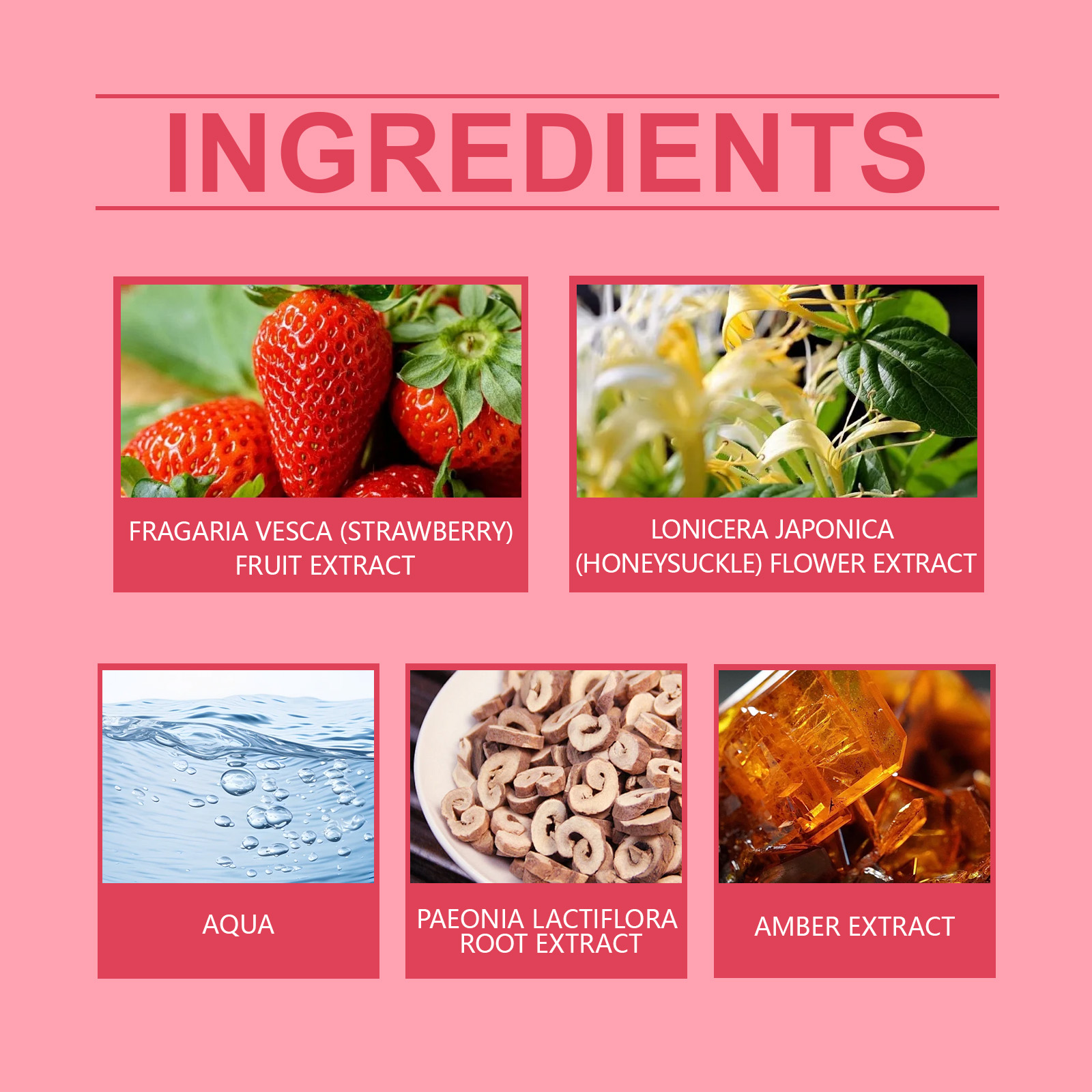 | 成分 | 草莓提取物、牡丹根提取物、金银花提取物 |