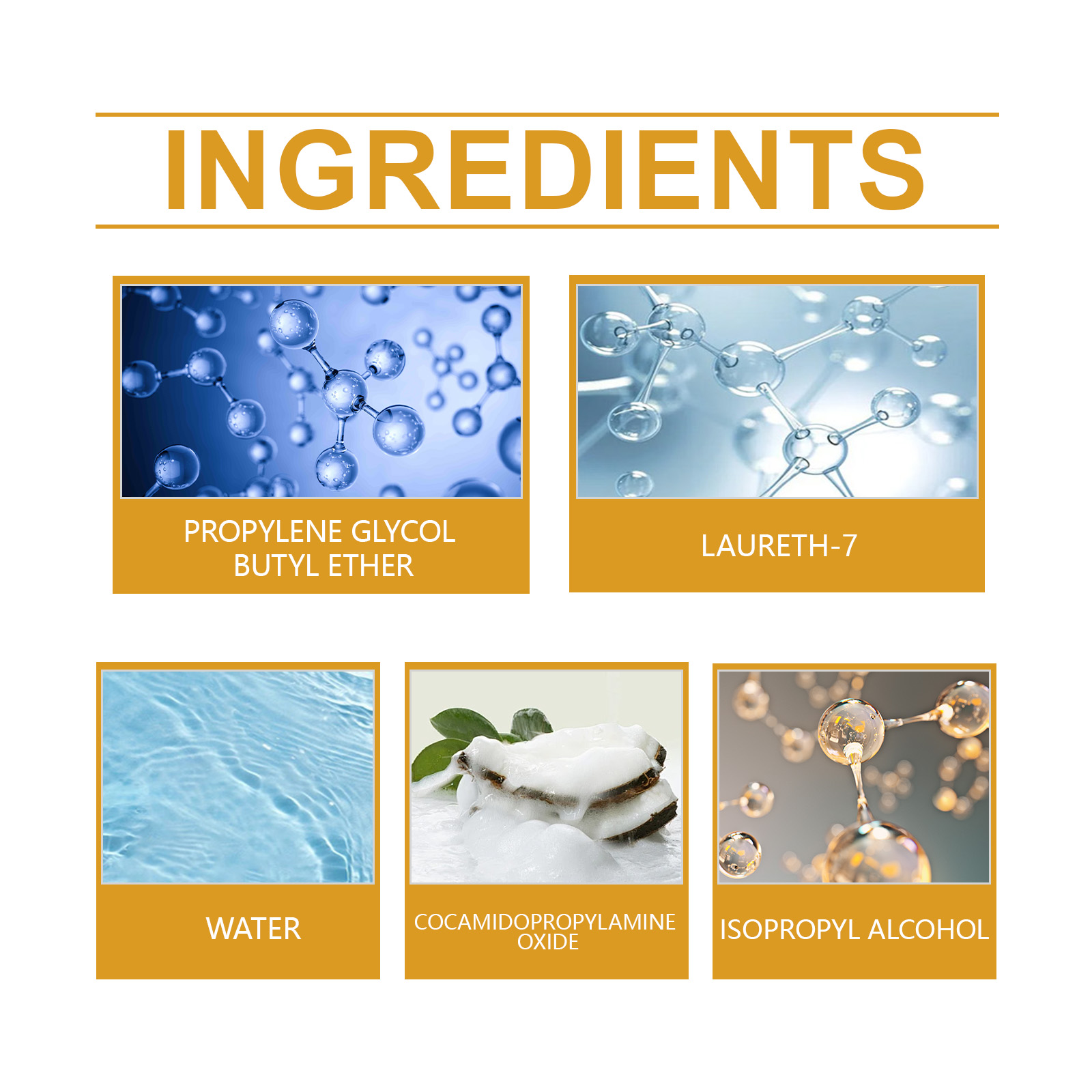 | 成分 | 丙二醇丁醚、月桂醇聚醚-7、椰油酰胺丙基胺氧化物 |