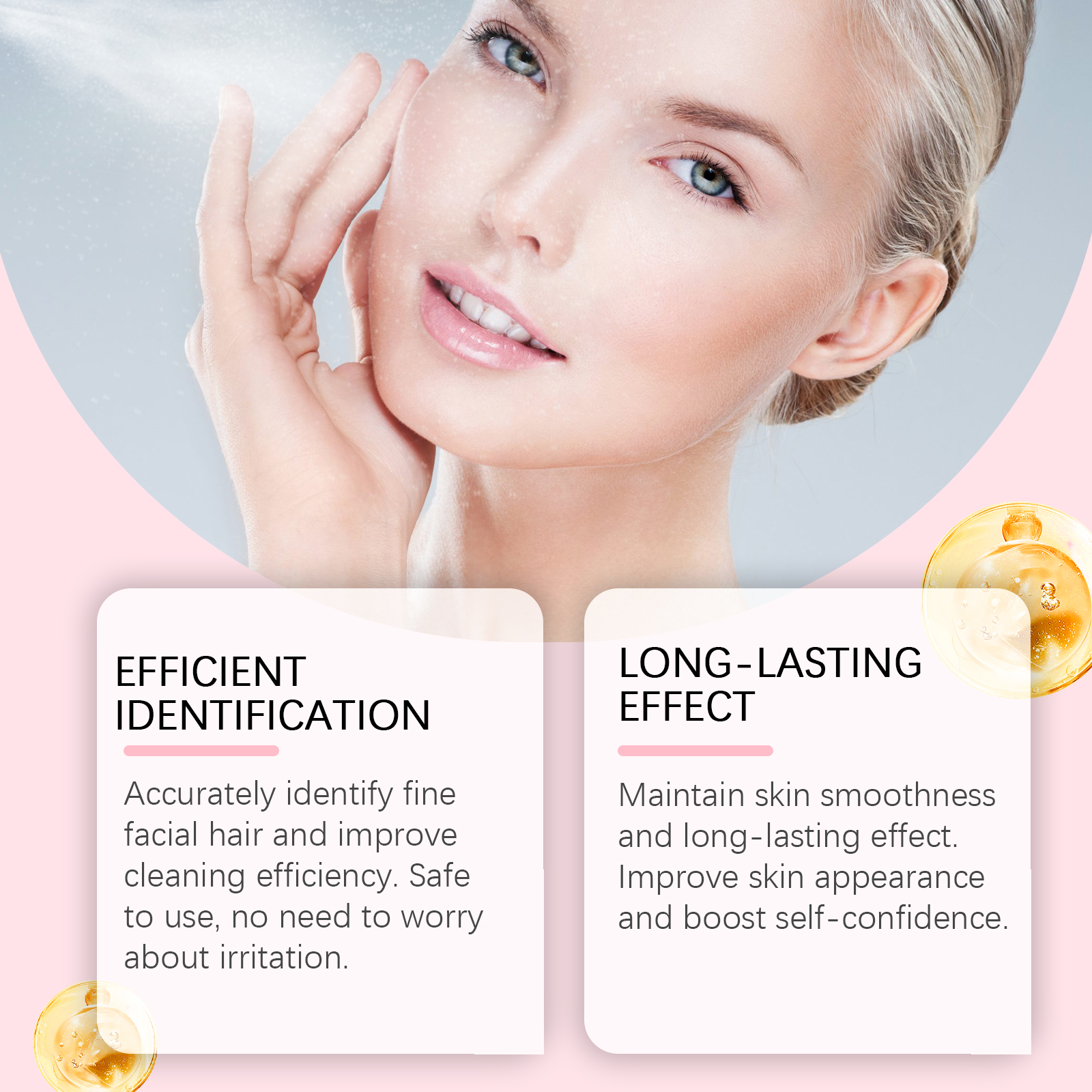我们的毛发识别喷雾含有玉米淀粉、二氧化钛。它可以保持肌肤光滑及效果持久改善肤色,增强自信心。它的使用方法很简单:用湿巾擦拭面部肌肤,将适量喷雾喷在面部,用修眉刀轻轻刮下面部毛发,用布擦掉多余残留物即可。并且可以准确识别面部细毛,提高清洁效率。使用安全,无需担心刺激。
