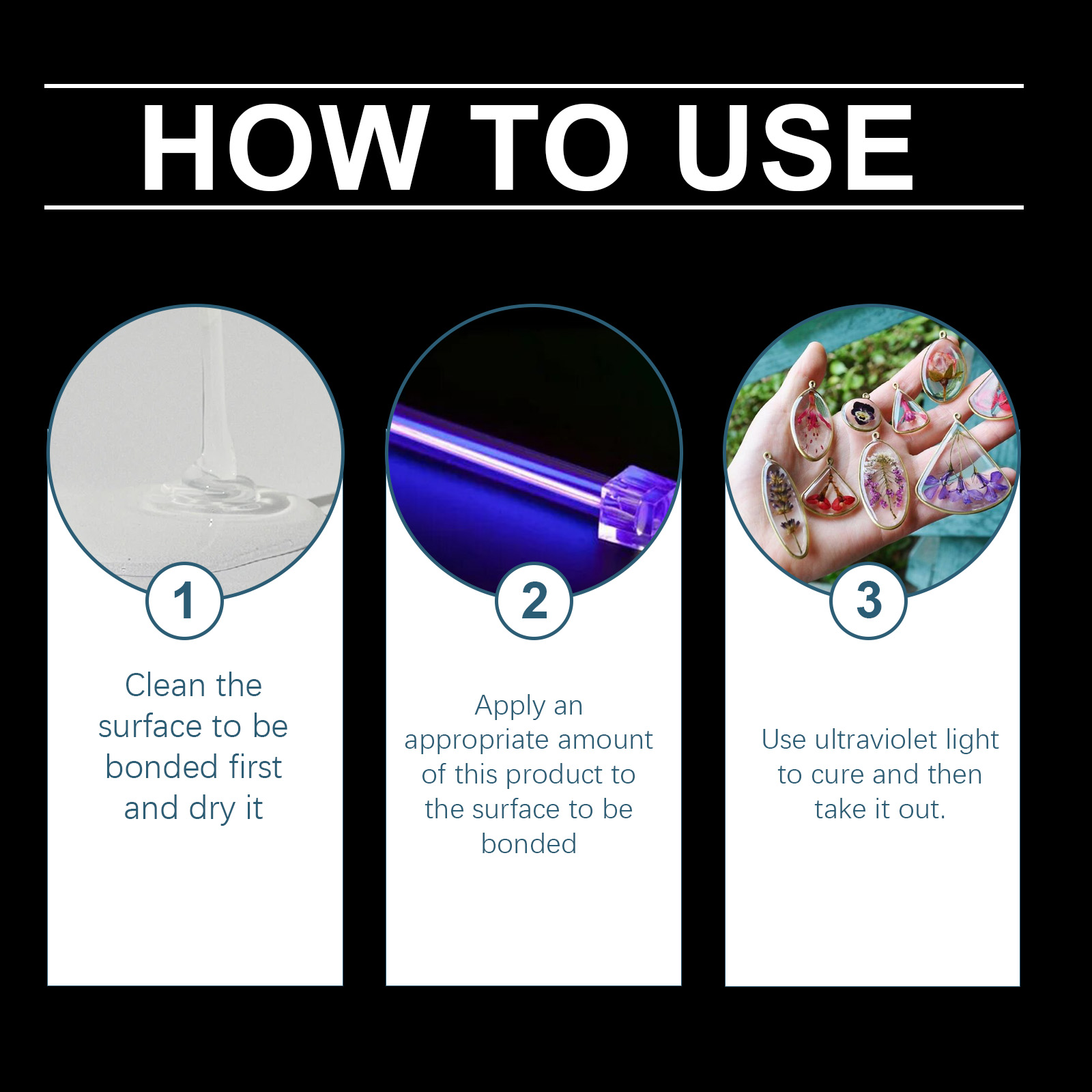 我们的高透明树脂胶水含有丙烯酸树脂、丙烯酸酯、稳定剂。它可以提供高强度和耐久性,以确保粘合部件的坚固性。增加胶水的柔韧性和流动性。防止贮存过程中发生意外聚合。它的使用方法很简单:1. 先清洗待粘接表面,然后擦干;2. 将适量本品涂于待粘合表面;3. 用紫外光固化后取出。紫外线照射下快速固化,节省时间,提高效率。无需混合或等待,只需打开瓶子,快速方便地使用。
