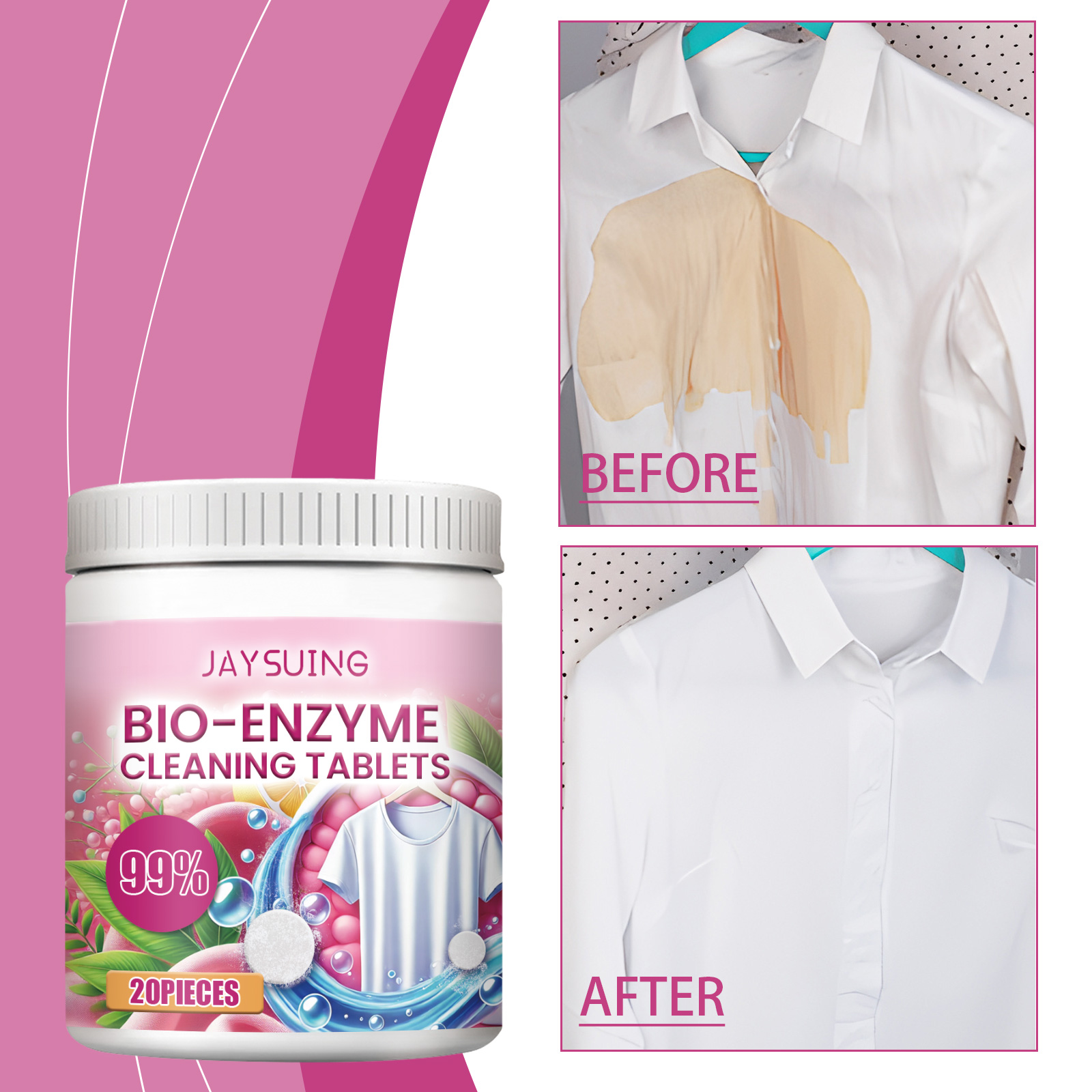 Jaysuing Bioenzyme Explosion Salt Cleaning Tablets, Clothing Perspiration And Stain Cleaning Instant Cleaning Tablets
