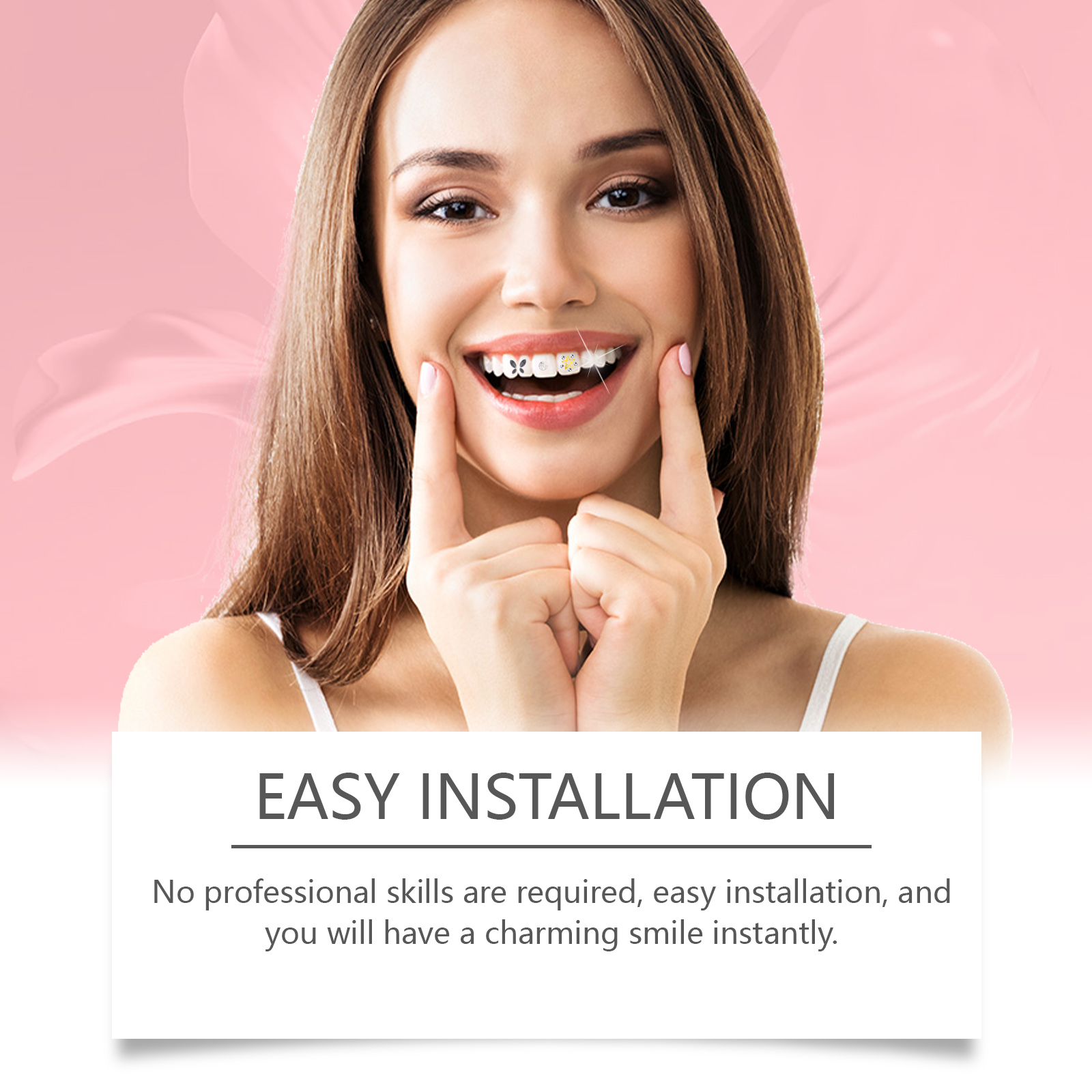 我们的水晶牙钻含有水晶。它可以让你成为时尚的焦点,展现你独特的个性。它的使用方法很简单:清洁牙齿,保持牙齿干燥,配合辅助胶使用。把牙钻贴在牙齿上就可以了。并且安装简单,瞬间就能拥有迷人的微笑。