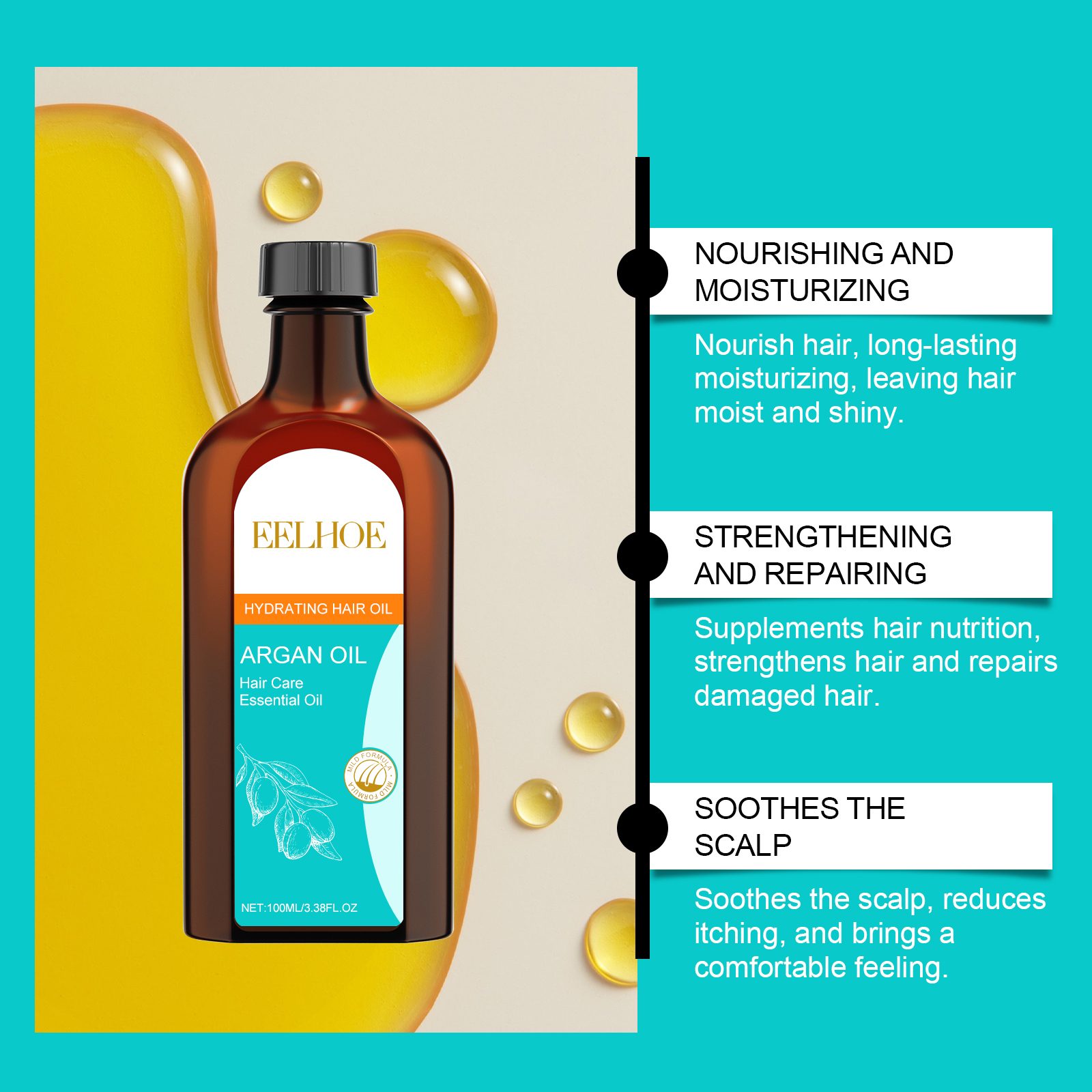 EELHOE Argan Oil Hair Care Essential Oil, Hydrating, Smooth, Glossy And Long-Lasting Hair Care Essential Oil