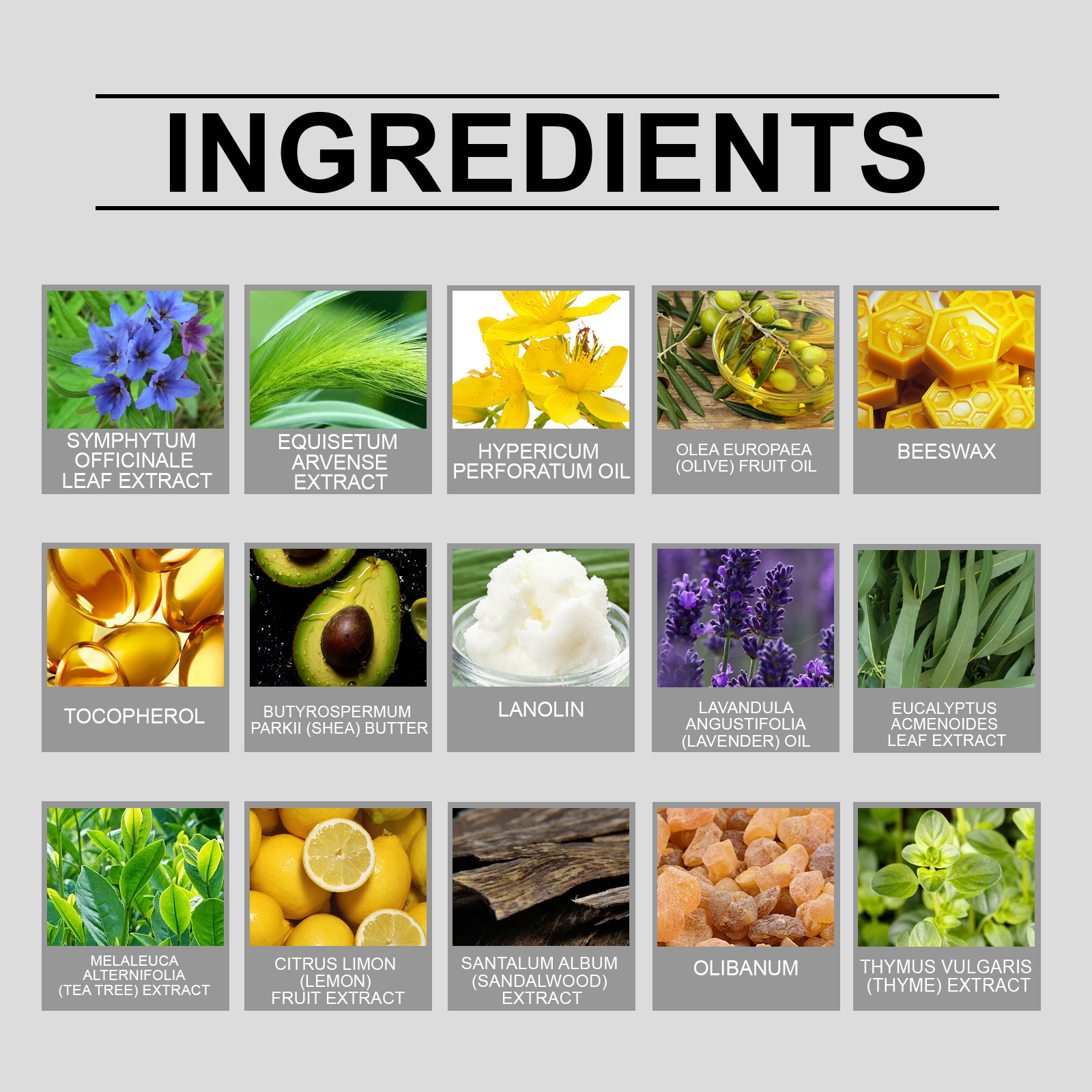 | 成分 | 檀香提取物、乳香、百里香提取物 |