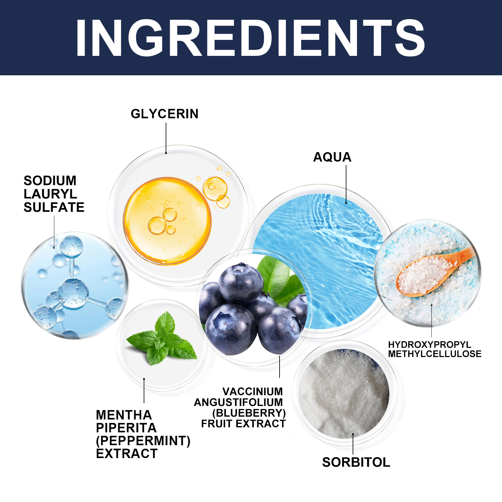 我们的蓝莓牙膏含有甘油、十二烷基硫酸钠。它有助于祛除表面牙垢,帮助维护牙齿和牙周组织健康。它的使用方法很简单:1.先在牙刷上压几滴。2.刷牙吧。使用后逐渐使牙齿变亮,减少牙齿问题。