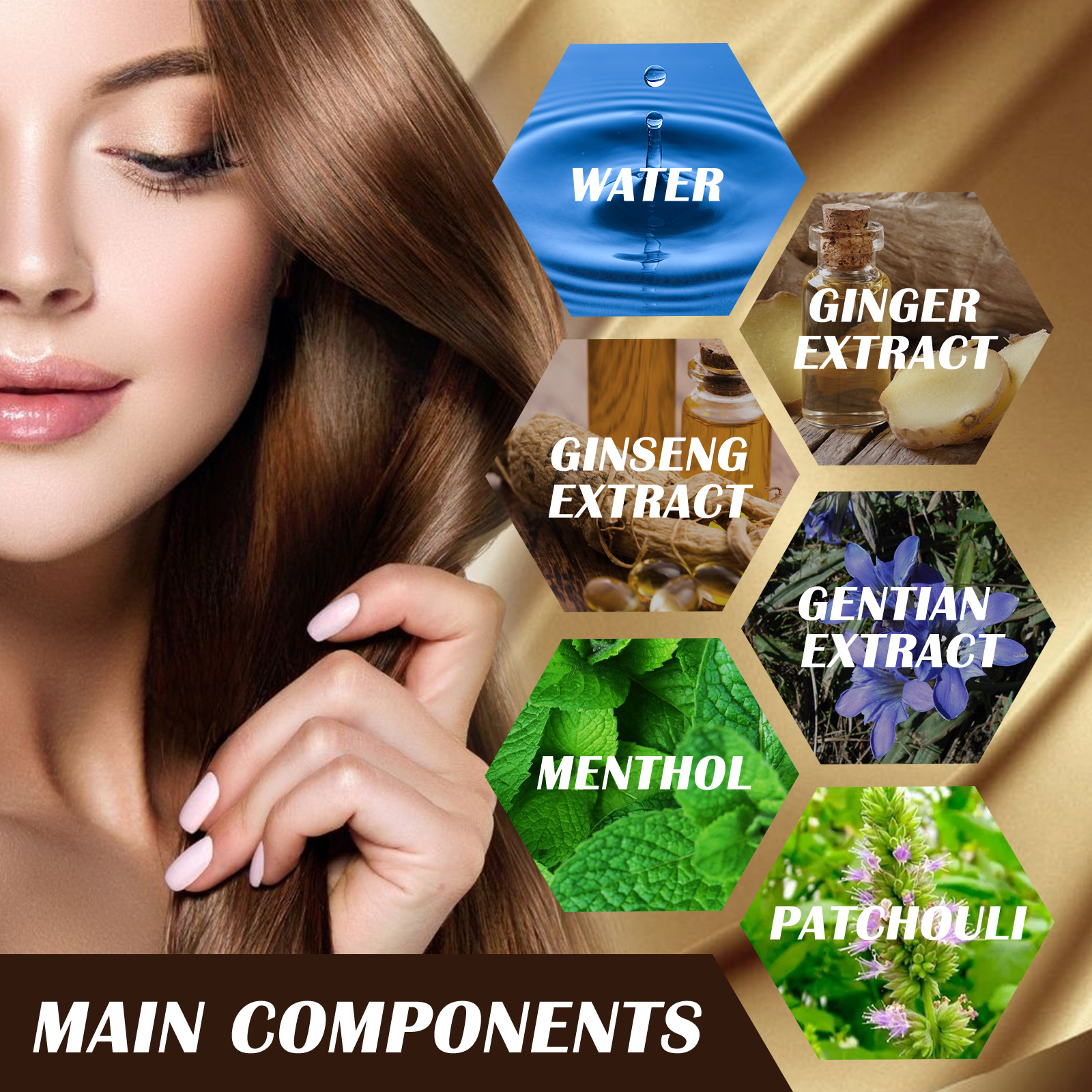 我们的生姜护发喷雾含有人参提取物、龙胆提取物、生姜提取物。它可以减少头皮屑,唤醒休眠的毛囊,改善供给能力增强,促进头发生长,有效减少白发密度滋润头发。它的使用方法很简单:首先清洁头发,对有问题的部位喷1-2次,按摩该的部位,直到产品完全融入皮肤,静置3-5分钟后冲洗干净。使用过程避免接触眼睛。使用后有助于刺激毛囊,加强发根,控制油脂分泌,防止油脂分泌过多而堵塞毛囊。帮助头发生长滋养发根,让头发乌黑亮丽。