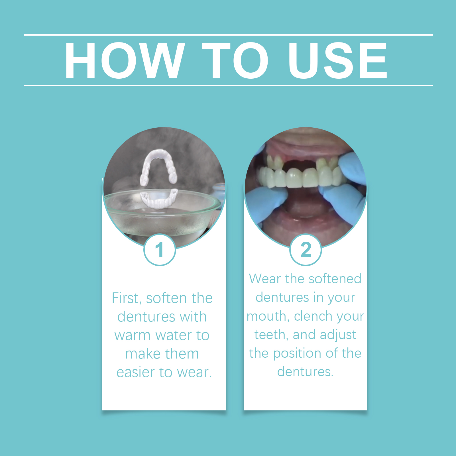我们的可调节卡扣式假牙含有硅胶。它可以临时牙套,使用方便快捷。填补和矫正牙齿间隙,改善牙齿外观。穿着舒适自然。适合各种场合,随时展现自信的笑容。易磨损,操作方便。它的使用方法很简单:1.首先,用温水软化假牙,使假牙更容易佩戴。2.戴上软化后的假牙,咬紧牙关,调整假牙的位置。舒适自然,材质柔软,穿着舒适。适用于不同齿距。