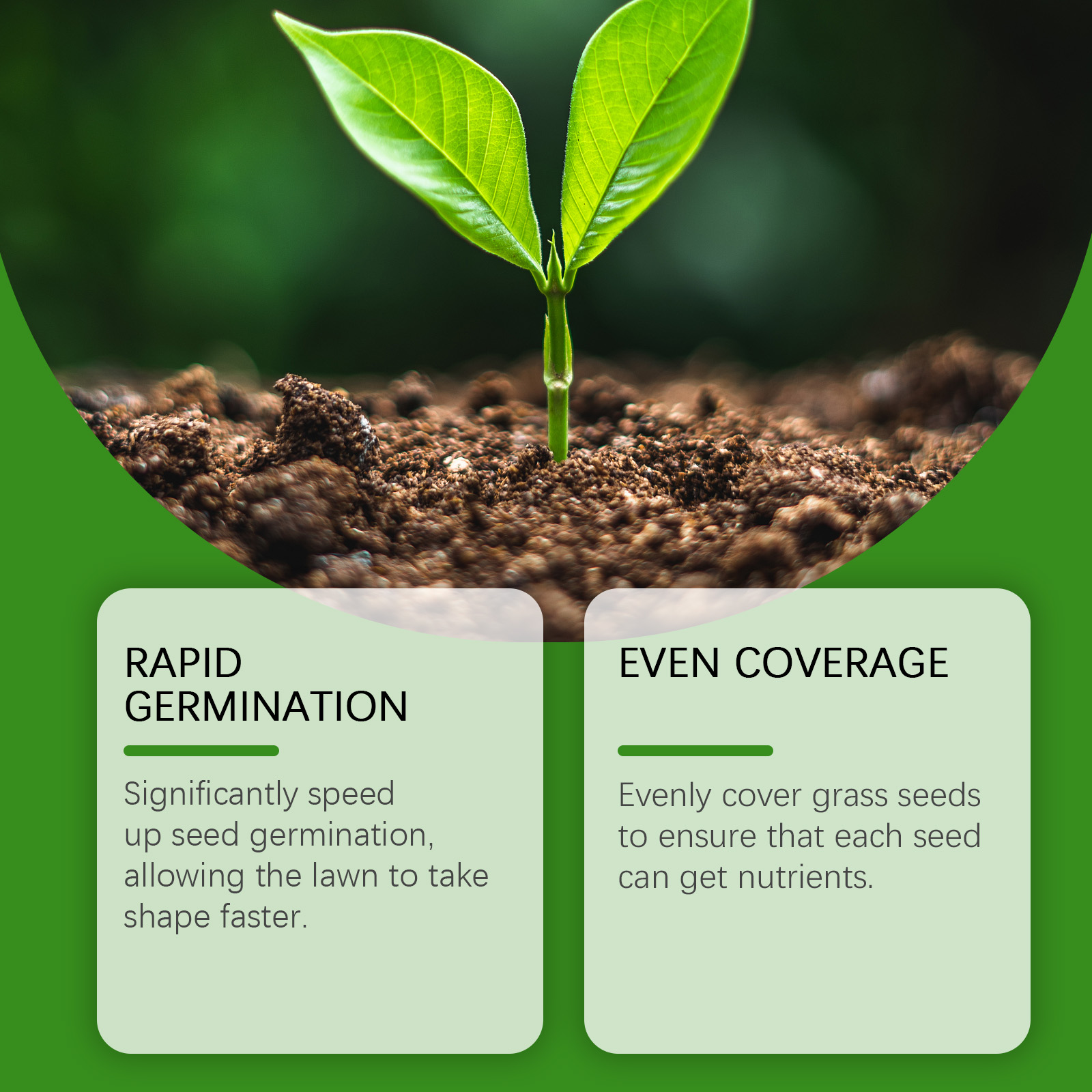 我们的液体草坪绿色喷雾含有EDTA 二钠、碳酸氢钠、月桂醇聚醚-7。它可以显著加快种子发芽,让草坪更快成型。均匀覆盖草籽,确保每个种子都能获得营养。它的使用方法很简单:1. 种植前清除垃圾和枯草。用水滋润土壤;2. 将本品与种子和水均匀混合,形成喷雾溶液;3. 将混合液体喷洒在草坪上。二合一剂量,保湿和稳定剂,让种子发芽更好,生长更稳定。