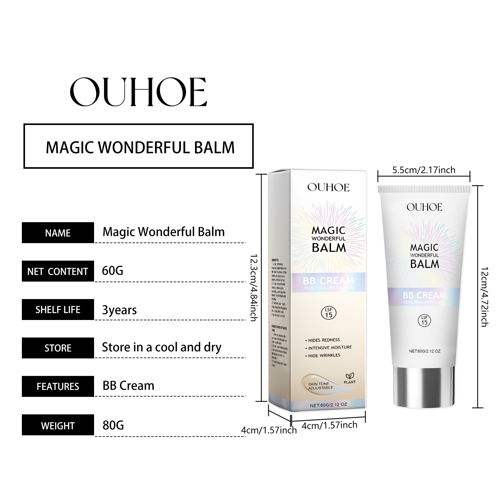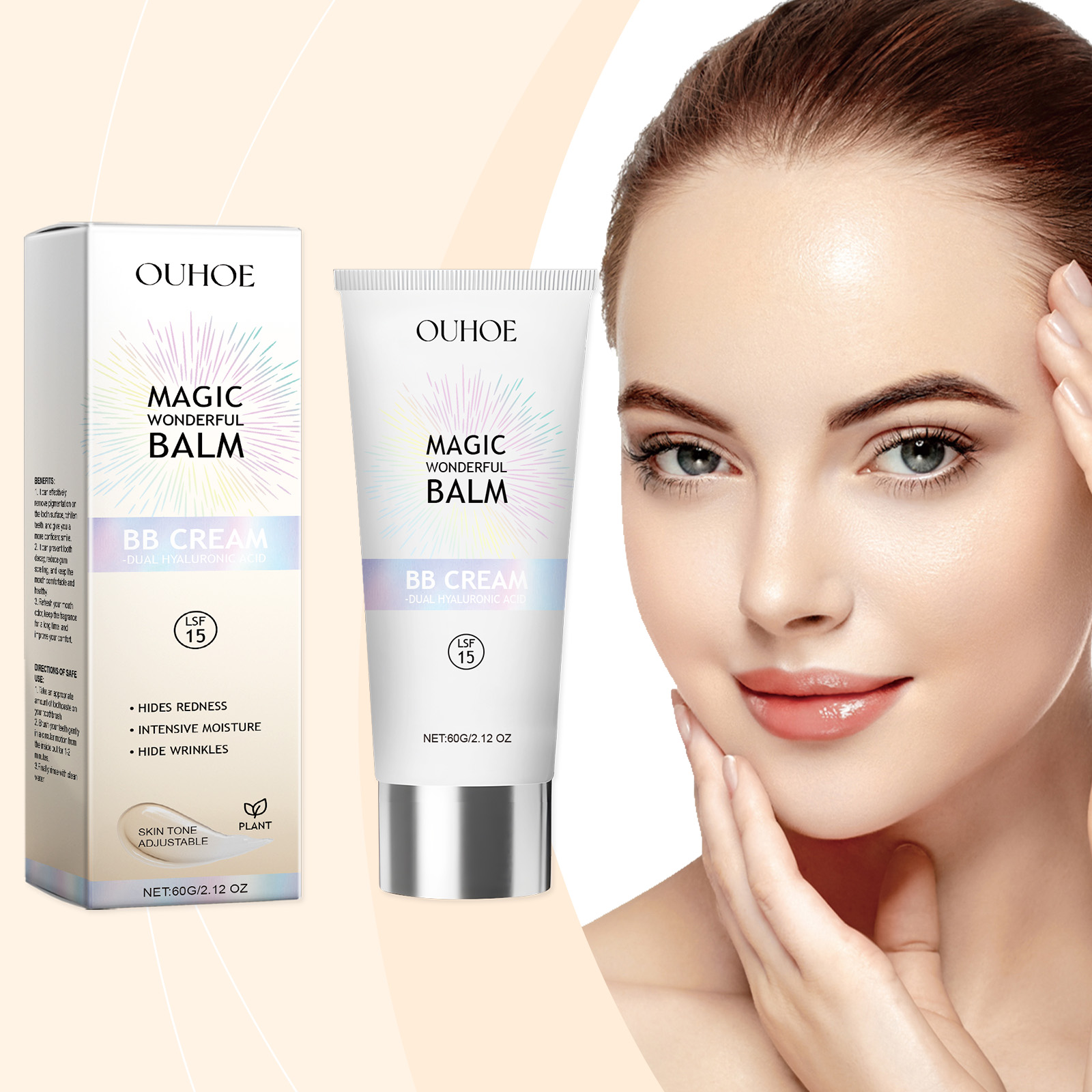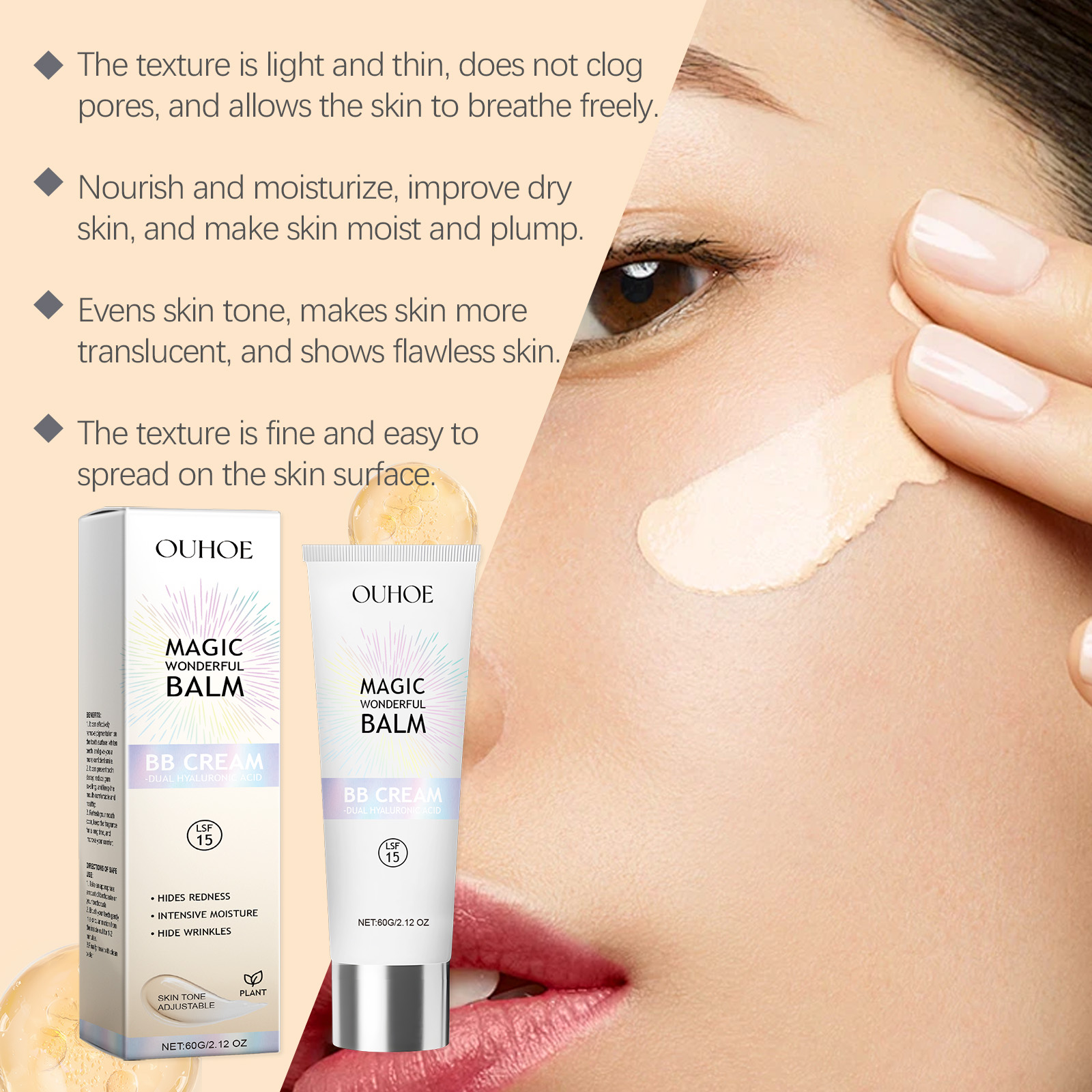 OUHOE Brightening Bb Day Cream, Daily Refreshing Moisturizing Light Nourishing Delicate Skin Tone Natural Concealer Cream