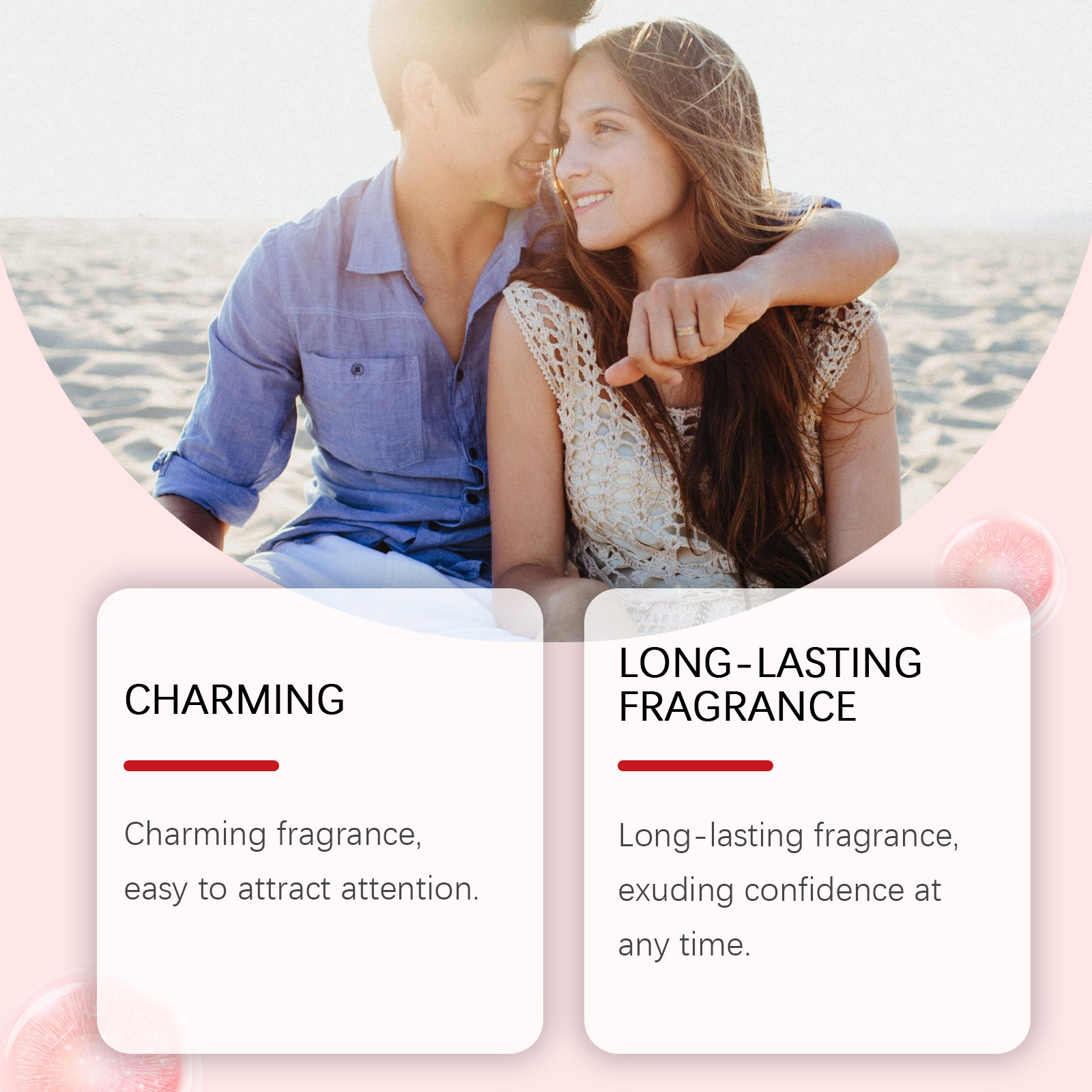 我们的魅力香水(薰衣草)含有烟酰胺、薰衣草提取物、鞣花酸。它可以提亮肌肤,让肌肤焕发迷人光彩。温和地保护皮肤,保持皮肤湿润;滋润肌肤,让肌肤焕发青春活力。它的使用方法很简单:1.打开瓶盖。2.按下喷嘴,将香水喷在脖子、手腕或身体的其他部位。与任何场合和服装完美搭配。它可以持续很长时间,确保你一整天都能保持迷人的香味。
