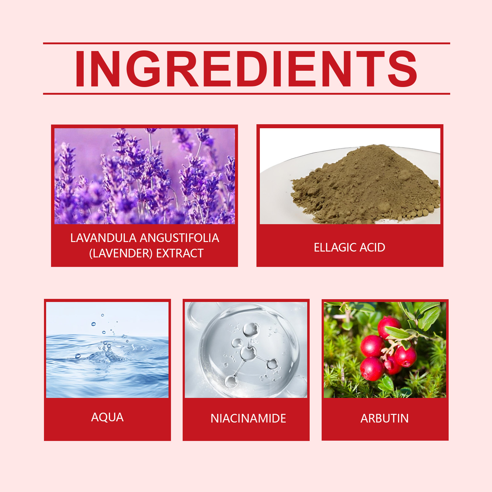 | 成分 | 烟酰胺、薰衣草提取物、鞣花酸 |