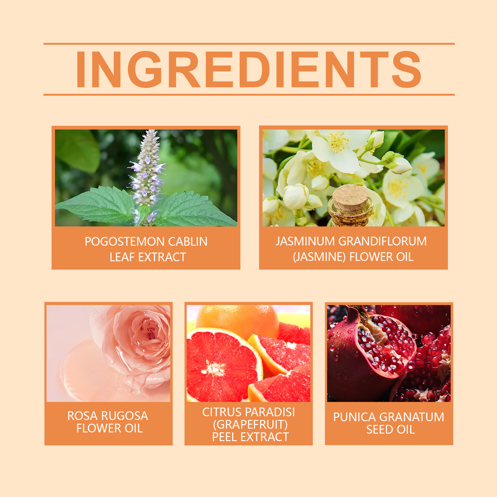 我们的香氛水系列含有茉莉黄色款:广藿香叶提取物、玫瑰花油;茉莉粉色款:丙二醇、茉莉花花提取物;石榴:石榴果实提取物、广藿香叶提取物。它可以抗氧化,提亮肤色,增添果香。稳定基地。延长香味的时间,给人深刻的回味。提神醒脑,有助于改善情绪,给人一种清新和充满活力的感觉。它的使用方法很简单:1.打开瓶盖。2.使用滚球香水在手腕、脖子后面、耳朵后面和膝盖后面轻轻滚动,等待香味蒸发。轻轻一触,信心倍增,气场完全打开。多重嗅觉层次带来深层感官享受。