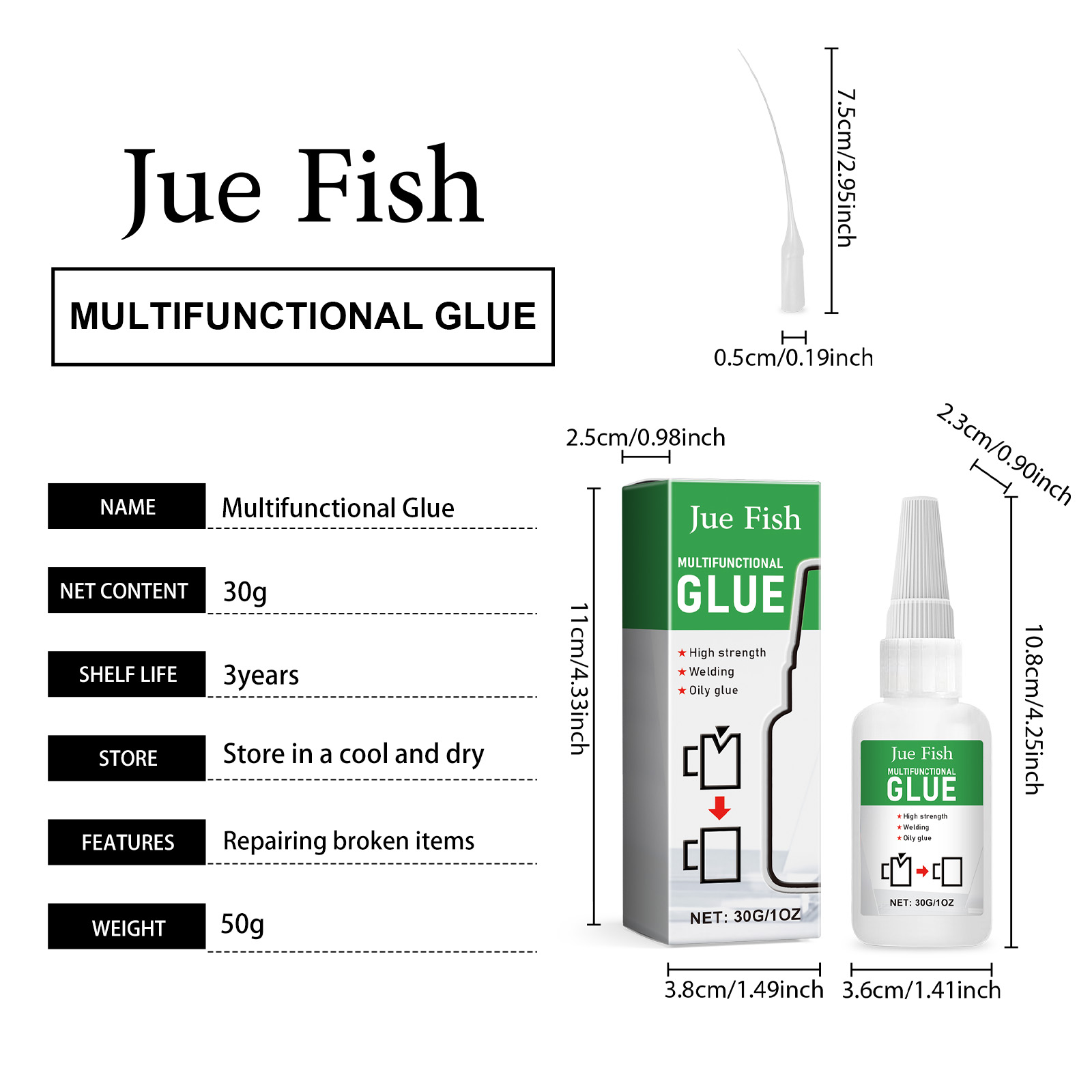 | 产品尺寸 | 胶水:3.6x2.3x10.8cm;滴管:7.5x0.5cm |