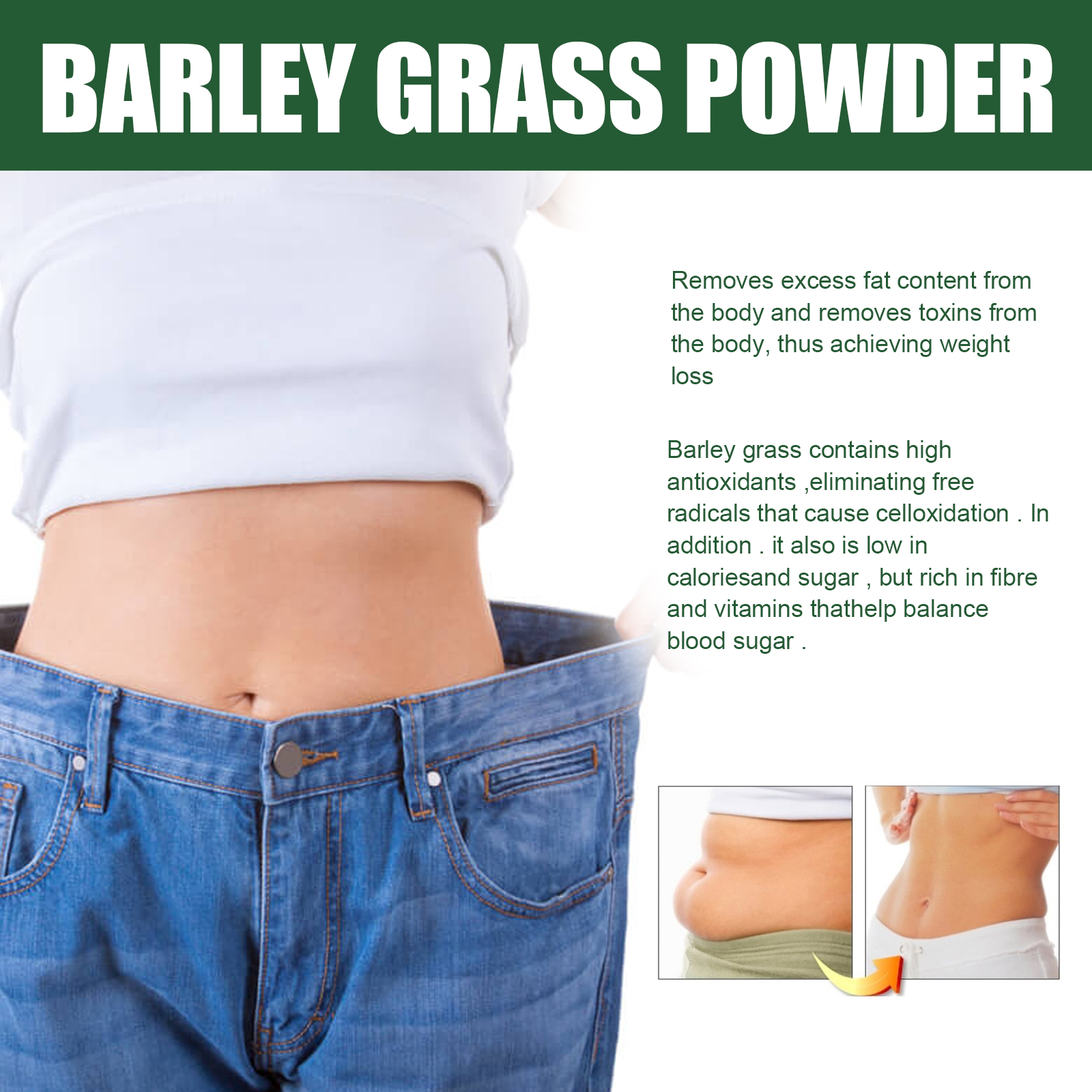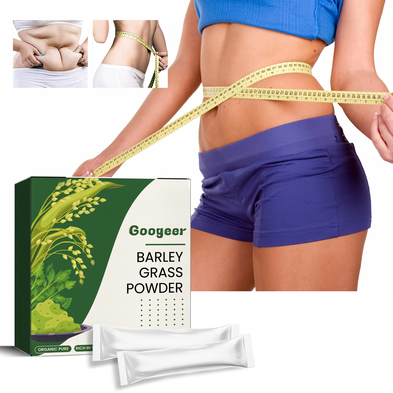 Googeer Barley Powder, Body Firming Big Belly Bye Meat Thighs Body Shaping Barley Grass Powder Pack