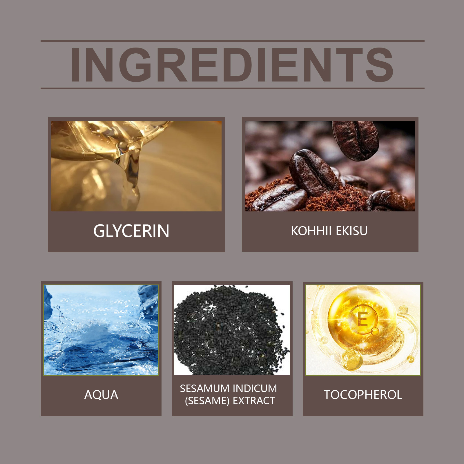 | 成分 | 咖啡提取物、芝麻提取物、维生素E |