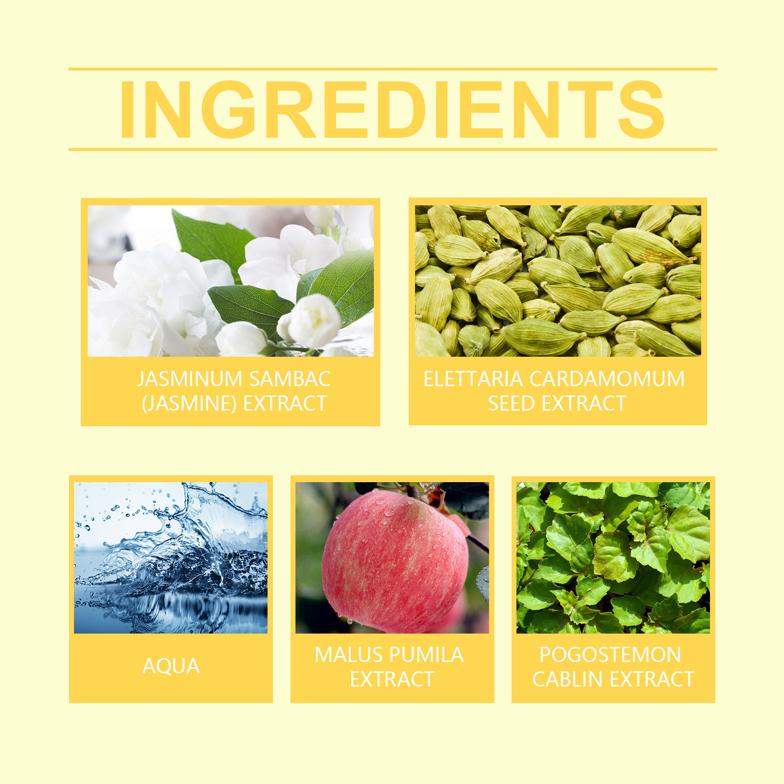 | 成分 | 茉莉花提取物、小豆蔻籽提取物、广藿香提取物 |