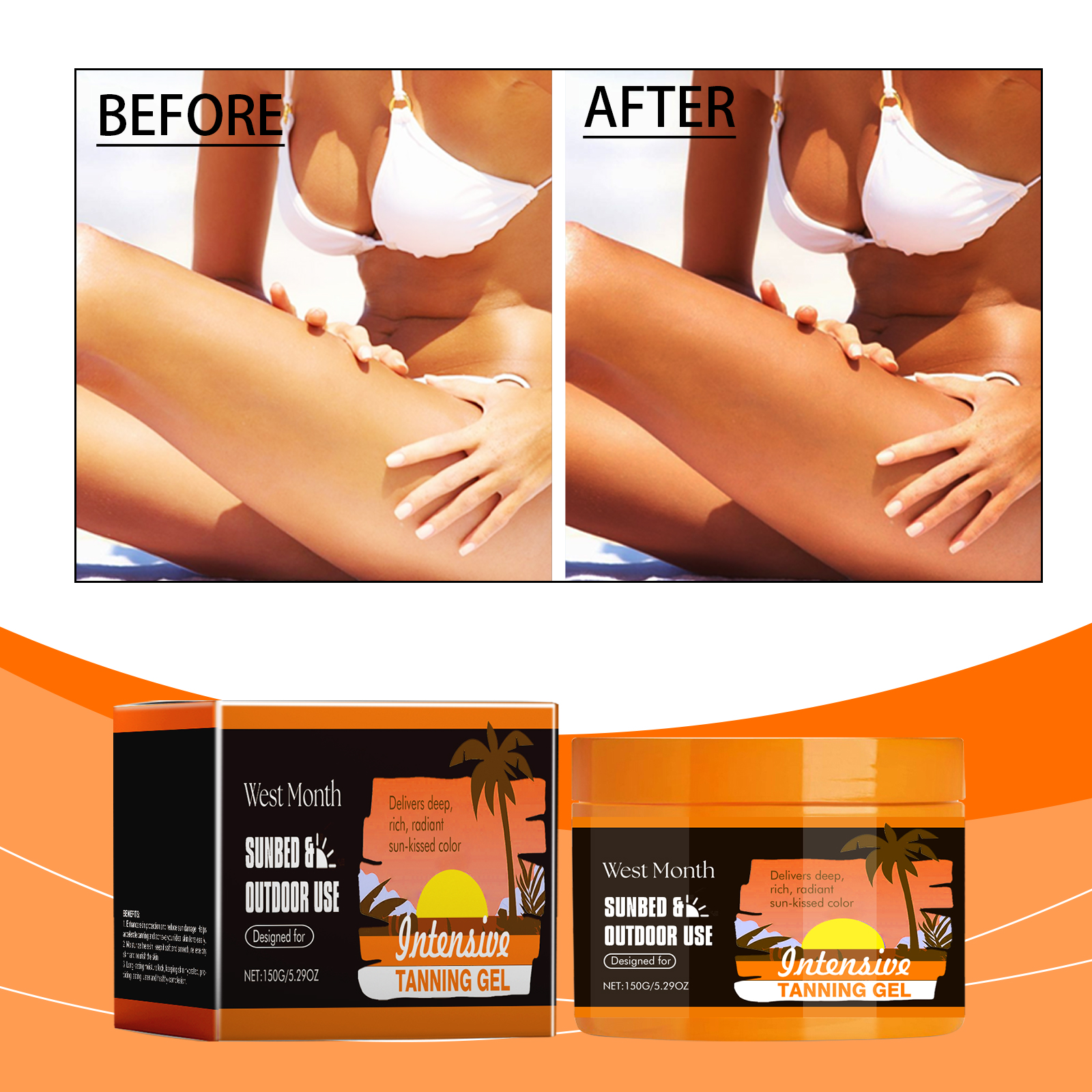 我们的胡萝卜助黑凝胶含有可可提取物、维生素E。它可以帮助加速晒黑,轻松获得理想的肤色。它的使用方法很简单:使用去角质前先用磨砂膏,取适量本品均匀涂于全身打圈,轻轻按摩至完全吸收。并且可以滋润肌肤,保持肌肤柔软光滑。