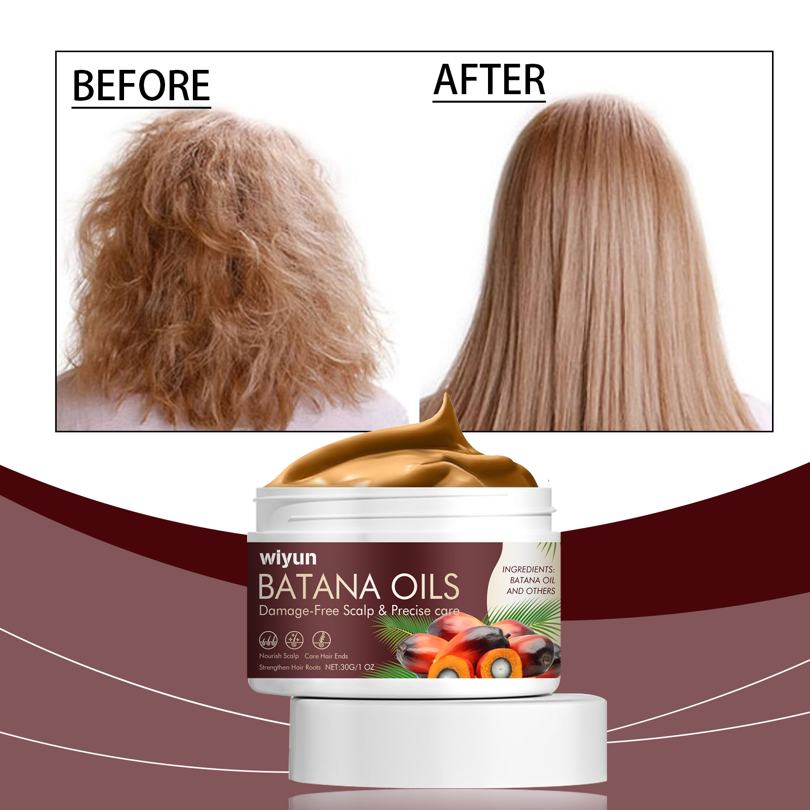 Wiyun Batana Smoothing Hair Mask, Hair Care Repair Hair Hydrating, Smooth And Nourishing Scalp Hair Mask