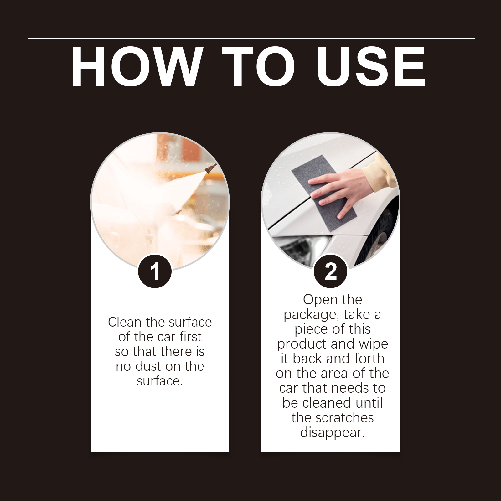 我们的汽车纳米闪光布含有化纤。它可以能够快速修复轻微的划痕和划痕,使车身恢复如新般光滑。它的使用方法很简单:1.首先清洁汽车表面,使其表面没有灰尘。2.打开包装,取一片本品,在需要清洁的地方来回擦拭,直至划痕消失。快速修复轻微划痕和划痕,无需专业工具和技术,只需简单擦拭即可轻松修复。