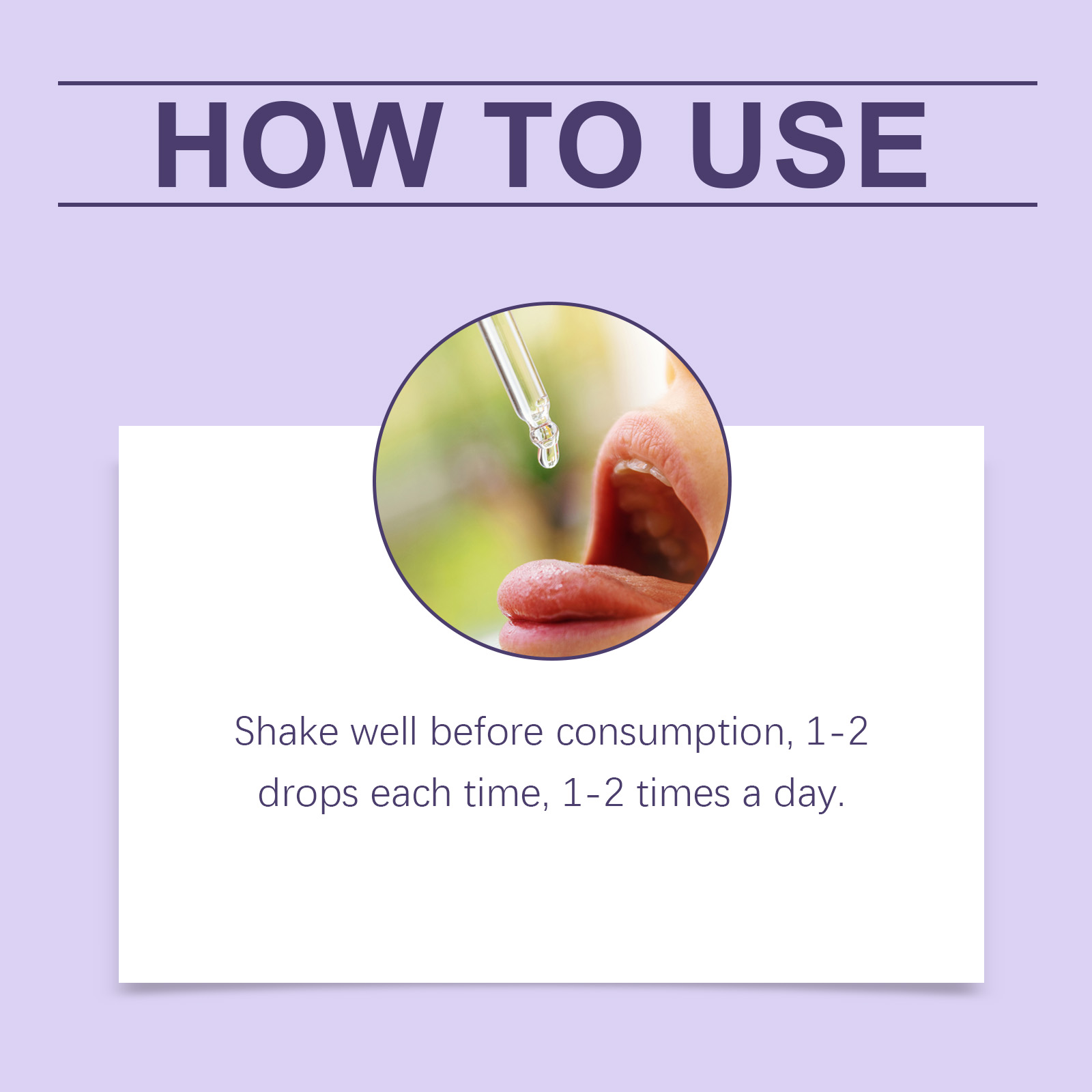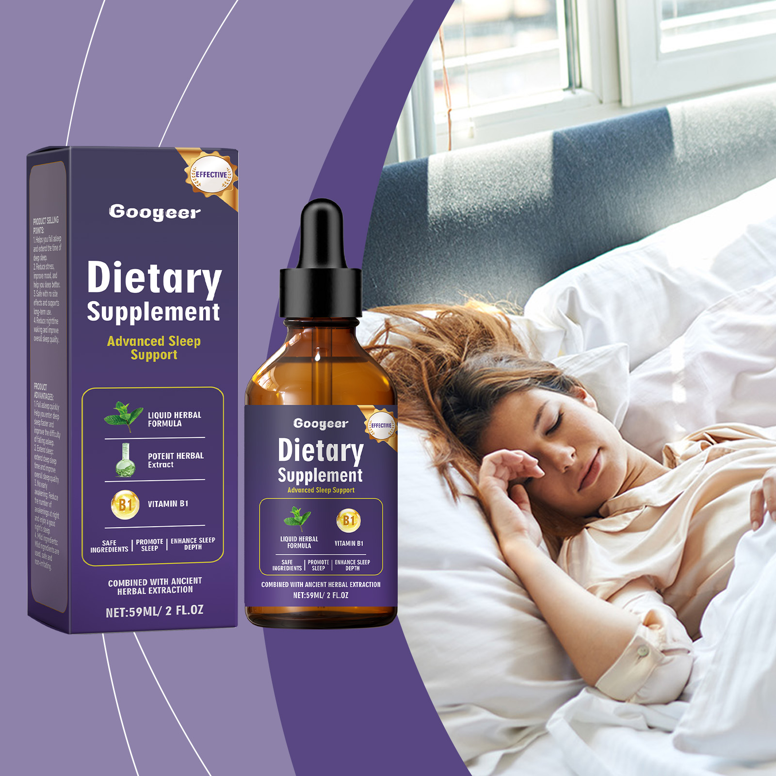 我们的膳食补充剂含有中药提取物、葡萄糖酸内脂、维生素b1。它可以帮助你更快进入深度睡眠,改善入睡困难。延长深度睡眠时间,提高整体睡眠质量。它的使用方法很简单:食用前摇匀,每次1-2滴,每天1-2次。膳食补充剂帮助你入睡,促进神经系统健康,改善神经传导。