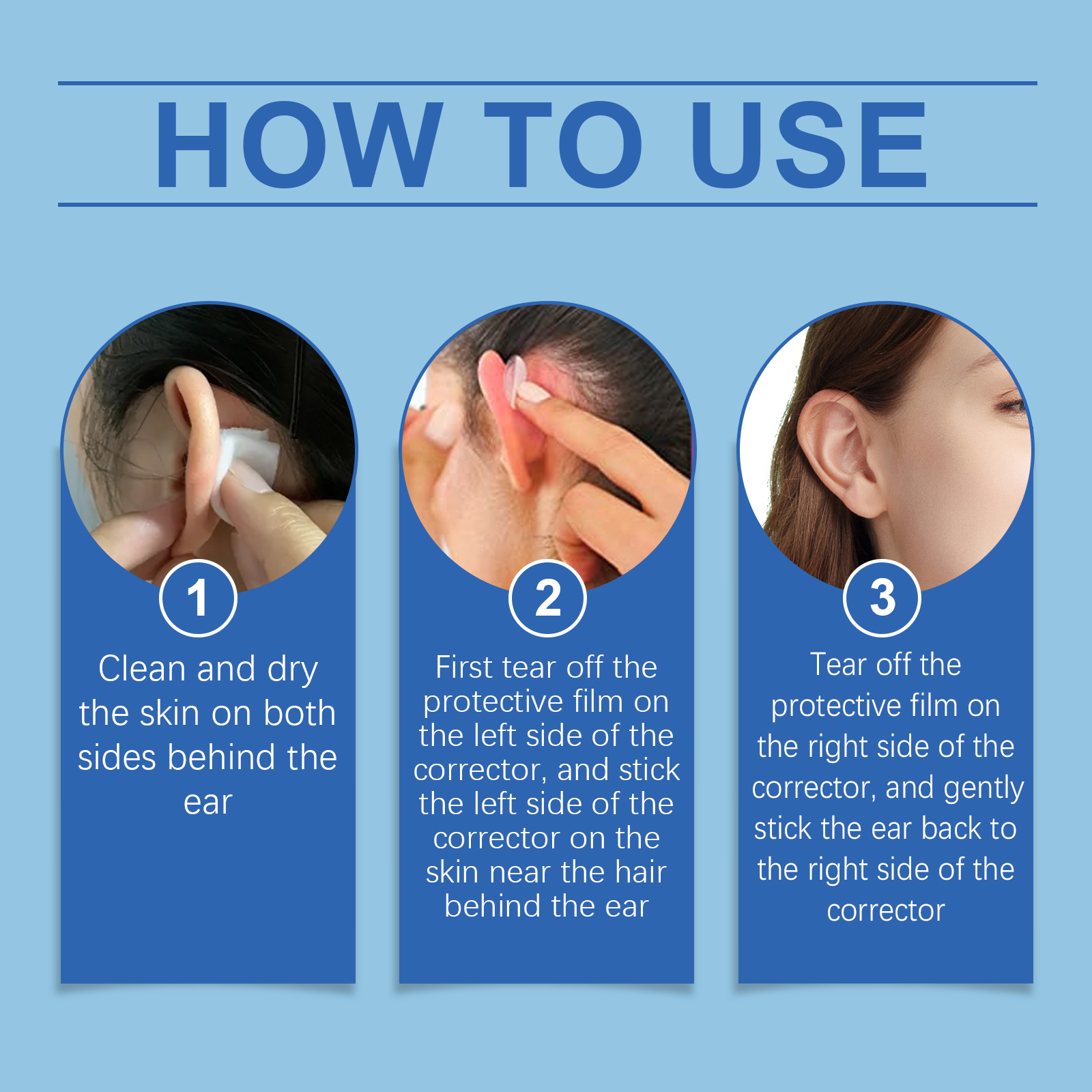 我们的耳朵支撑贴含有纳米胶。它可以支撑着耳朵,像精灵的耳朵,造型独特。超轻材质,长时间佩戴无不适。它的使用方法很简单:1.清洁并擦干耳后两侧皮肤;2.首先撕下矫正器左侧的保护膜,将矫正器左侧贴在耳后毛发附近的皮肤上;3.撕下矫正器右侧的保护膜,将耳朵轻轻贴回矫正器右侧。轻松地改变你的形象,并立即开始;高品质材料,确保长期佩戴。