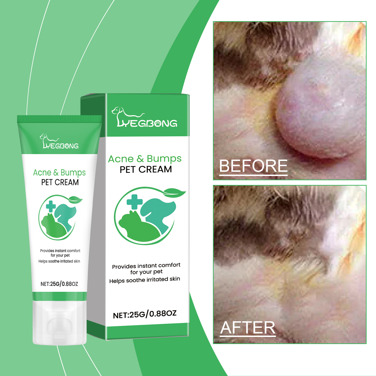 我们的宠物护理霜含有金盏花提取物、灵芝提取物。它可以快速缓解皮肤不适,减少红肿。它的使用方法很简单:用温水清洁患处,取适量霜均匀涂于痘痘或疙瘩上,轻轻按摩促进吸收。并且可以清洁皮肤,减少细菌生长。并且可以帮助缓解宠物皮肤上的肿块和粉刺,显著改善皮肤状况,促进健康皮肤的回归,让宠物看起来更清新。