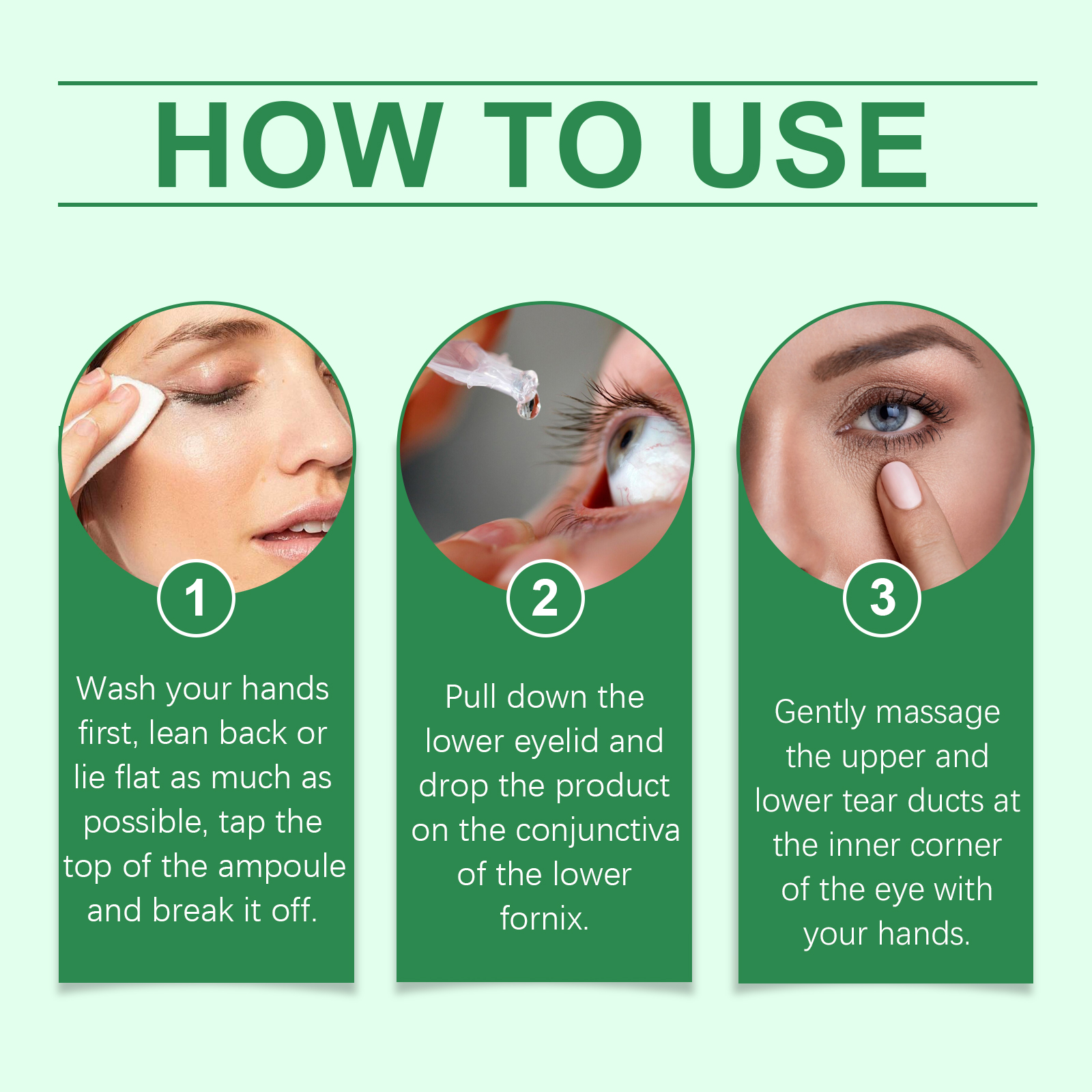 我们的眼部护理滴眼液含有维生素B6、天冬氨酸、银杏叶提取物。它可以促进眼细胞修复,减轻眼疲劳。维持泪膜稳定,减少干眼症。提供营养,促进眼部新陈代谢。它的使用方法很简单:1. 先洗手,尽量向后靠或平躺,轻敲安瓿瓶的顶部,然后把它掰开。2. 拉下下眼睑,放下下穹窿结膜。3. 用手轻轻按摩眼睛内眼角的上、下泪管。蕴含保湿成分,持久保湿,防止眼睛干涩。具有抗菌功能,保护眼睛免受伤害。配方温和,无刺激性,适合长期使用。