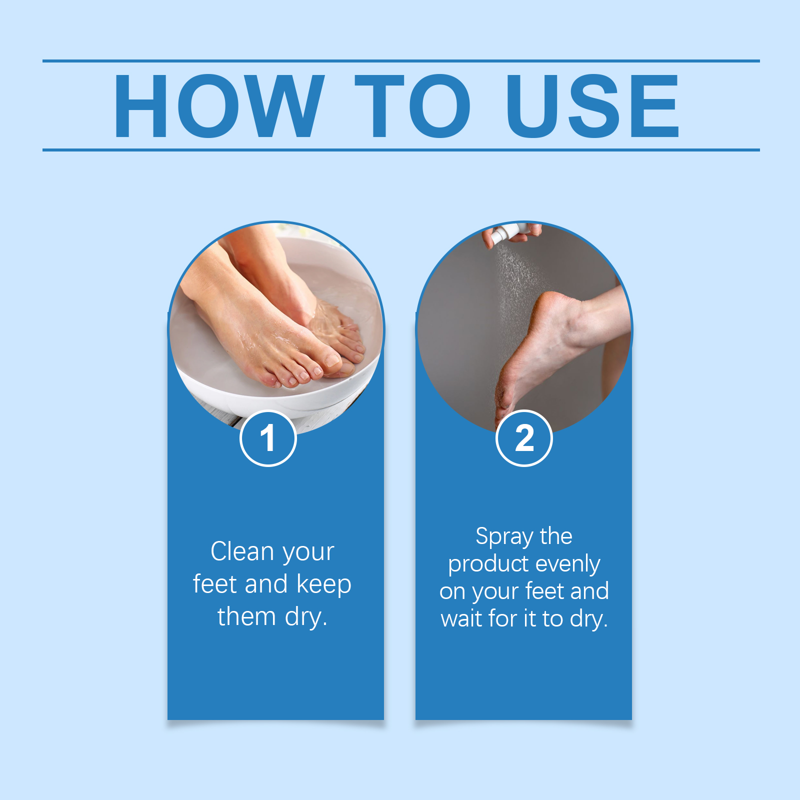 我们的足部护理喷雾含有地肤子提取物、狼毒花提取物、白鲜根提取物。它可以滋养足部,告别干燥脱皮,减少足部不适,提升生活品质。它的使用方法很简单:1.清洁你的脚,保持干燥。2.将产品均匀地喷在脚上,等待它变干。迅速解除,告别难以忍受的瘙痒。家庭必备,适合所有成年人。调节足部出汗,保持足部干燥。净化足部环境,保持足部健康。