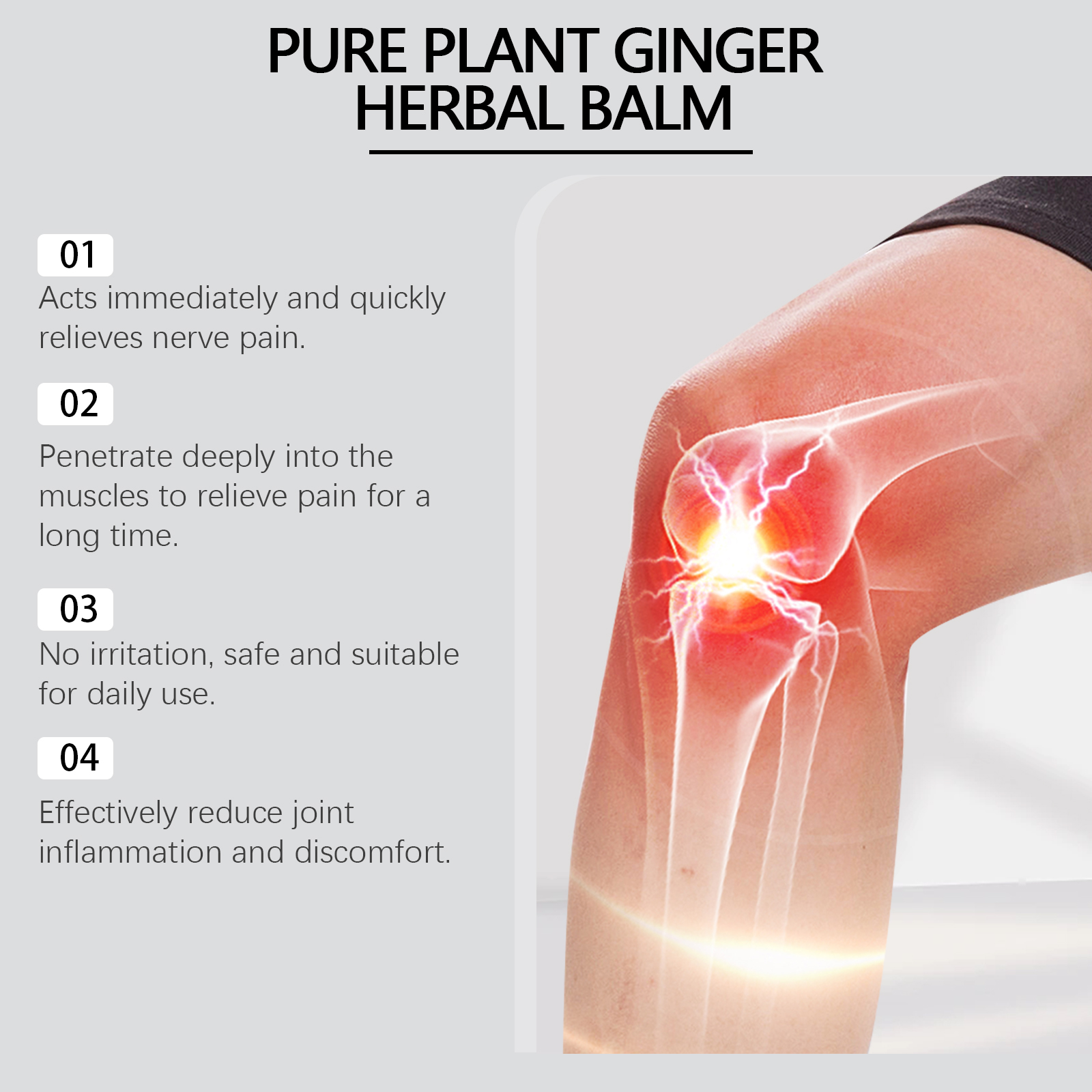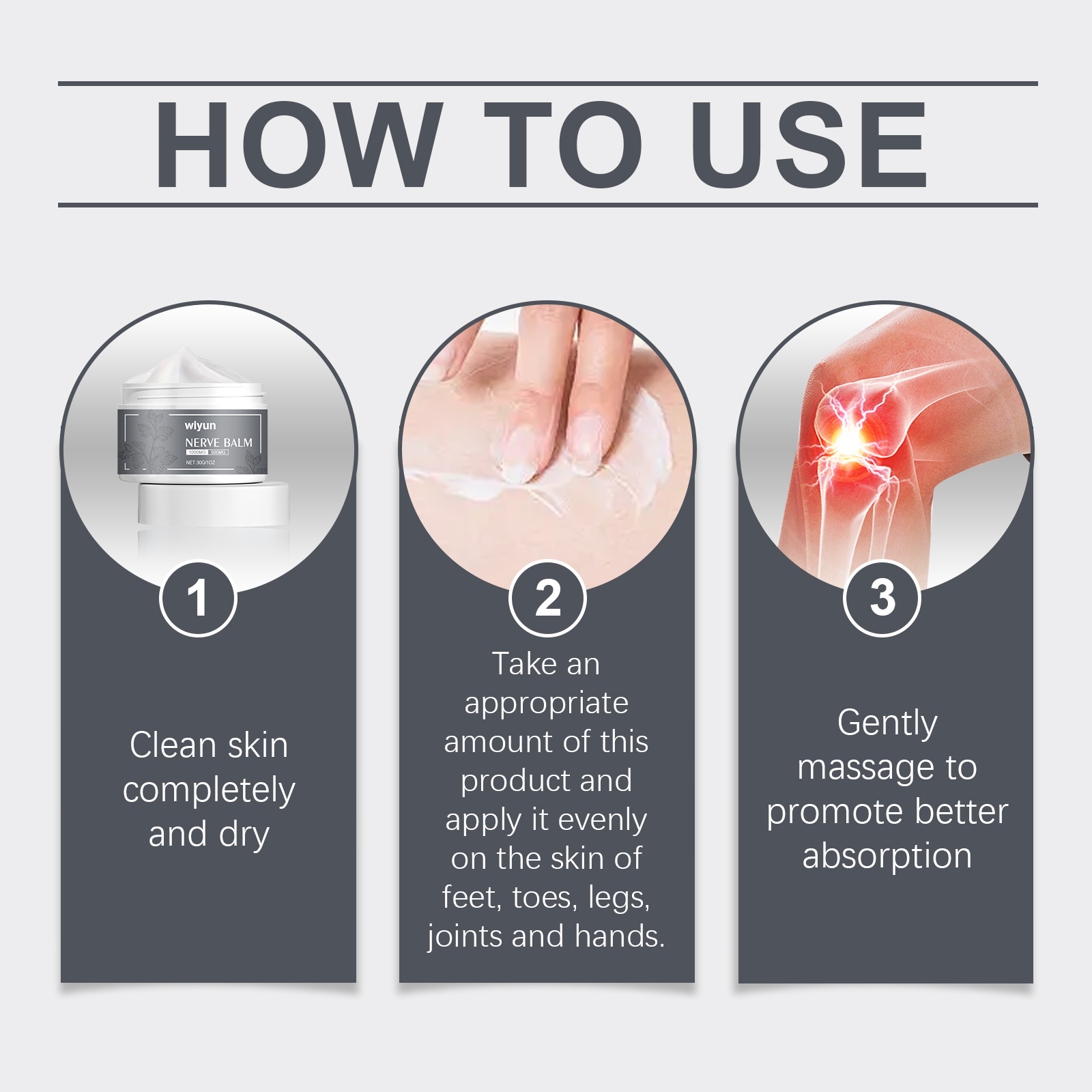 我们的关节护理膏含有矿油、甘油硬脂酸酯、卡波姆。它可以快速镇痛,适用于各种疼痛类型。它的使用方法很简单:彻底清洁皮肤,干燥,取适量本品,均匀涂于脚、脚趾、腿、关节、手的皮肤,轻轻按摩促进更好的吸收。并且可以深入皮肤,到达痛点,提供持久的缓解。