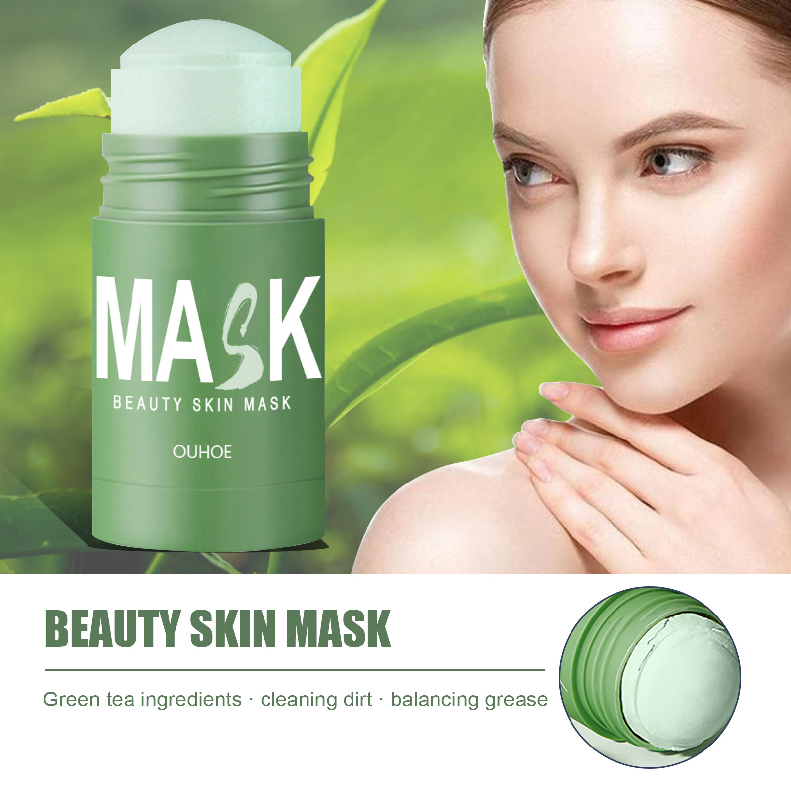 OUHOE Green Tea Mask Stick, Acne Blackheads Pimple Face Cleansing And Pore-Tightening Smear Mask Clay