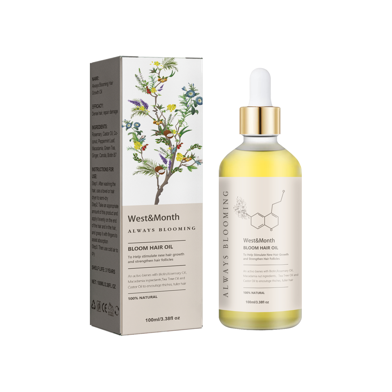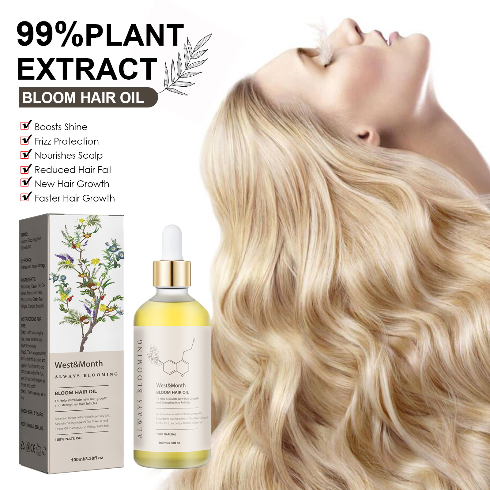 West&Month Always Blooming Hair Growth Oil, Moisturize And Thicken Hair And Repair Damaged, Dry And Frizzy Hair Care Essential Oil