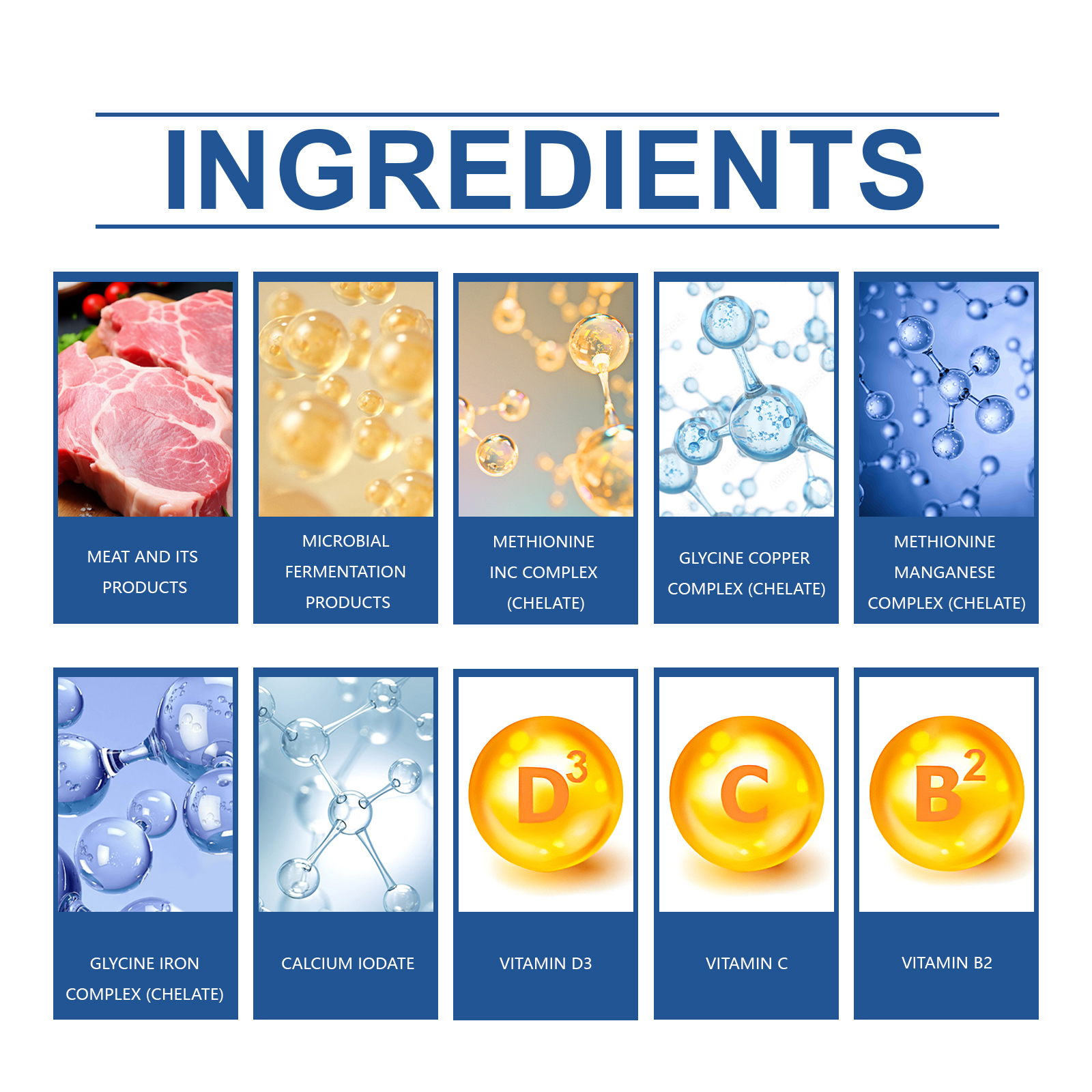 | 成分 | 肉类及制品、微生物发酵类制品、蛋氨酸锌络(螯)合物 |
