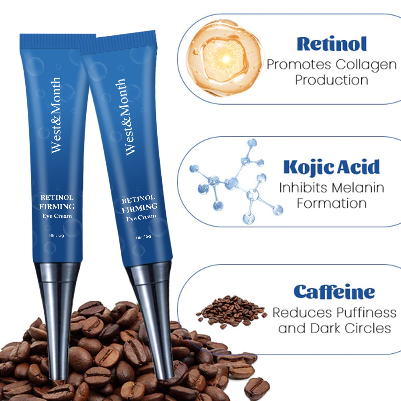 West&Month Retinol Firming Eye Cream, Dark Circles Repair Moisturizing Firming Eye Cream