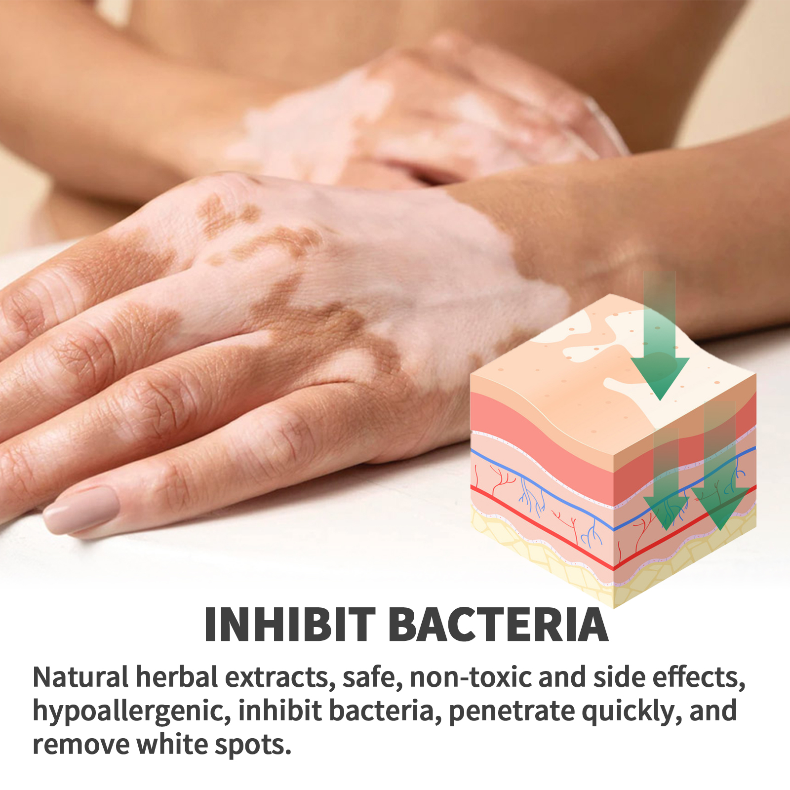 我们的白斑修护霜含有菟丝子、补骨脂、防风草。它可以刺激天然植物护肤配方,不刺激皮肤。有效抑制细菌有效抑制细菌,帮助消除白癜风中的白癜风,帮助恢复皮肤复原来的肤色。它的使用方法很简单:首先将本品涂抹于皮肤上,轻轻按摩至被皮肤吸收,使用后快速渗透至肌肤底层,抑制皮肤细菌,帮助恢复原有肤色,治疗皮肤上的白斑,让你的皮肤变得美丽。