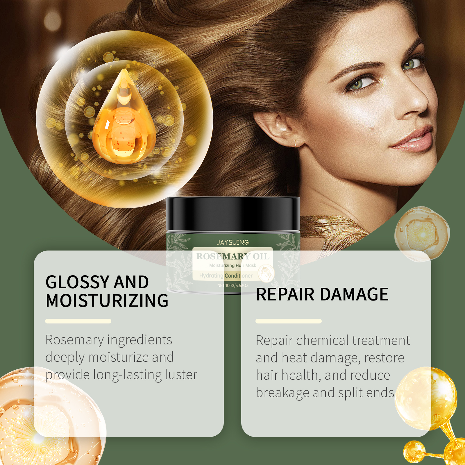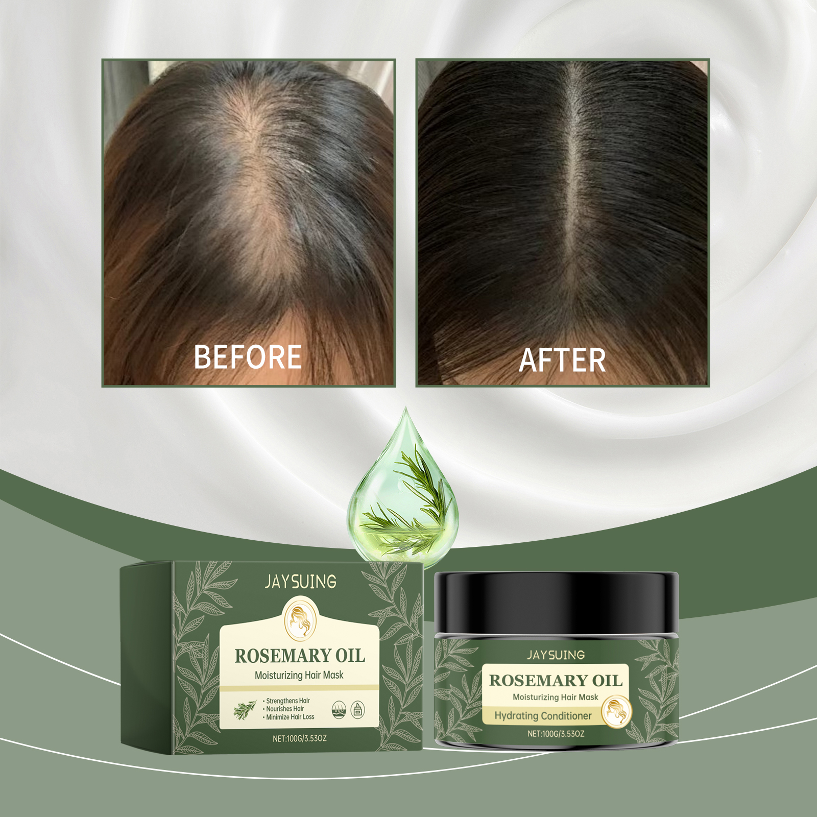 Jaysuing Rosemary Hair Mask, Improve Dry Hair, Smooth Hair, Moisturize And Repair Hair Luster Hair Mask