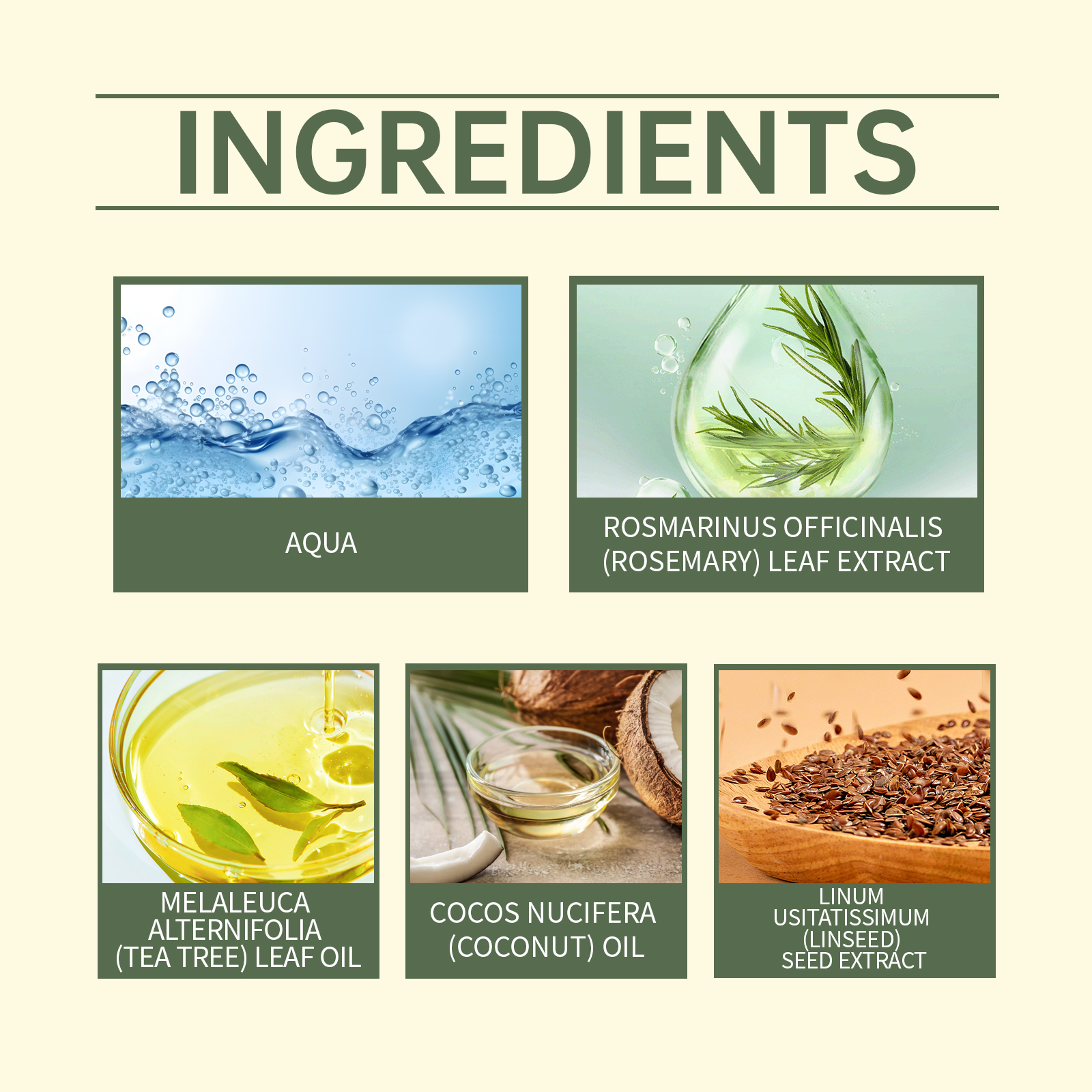 | 成分 | 茶树油、椰子油、亚麻籽提取物 |
