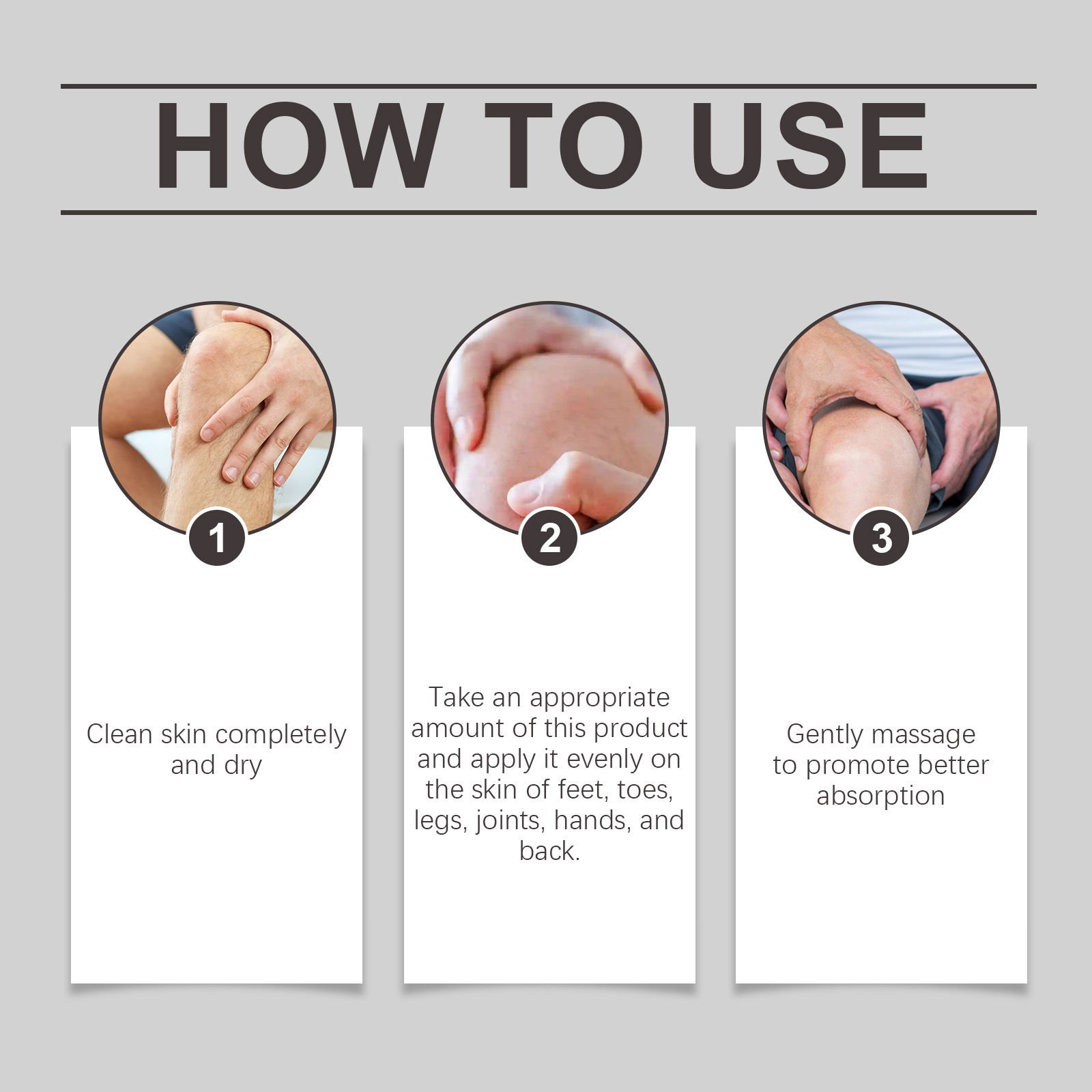 我们的关节护理膏,由甘油硬脂酸酯、羟乙基纤维素精心调配而成。专为迅速缓解神经疼痛设计。使用方法极为便捷:彻底清洁皮肤并擦干,取适量本产品,均匀涂抹于脚部、脚趾、腿部、关节、手部和背部的皮肤上。轻轻按摩,以促进更好吸收。并且可以快速缓解关节和背部疼痛,效果持久。