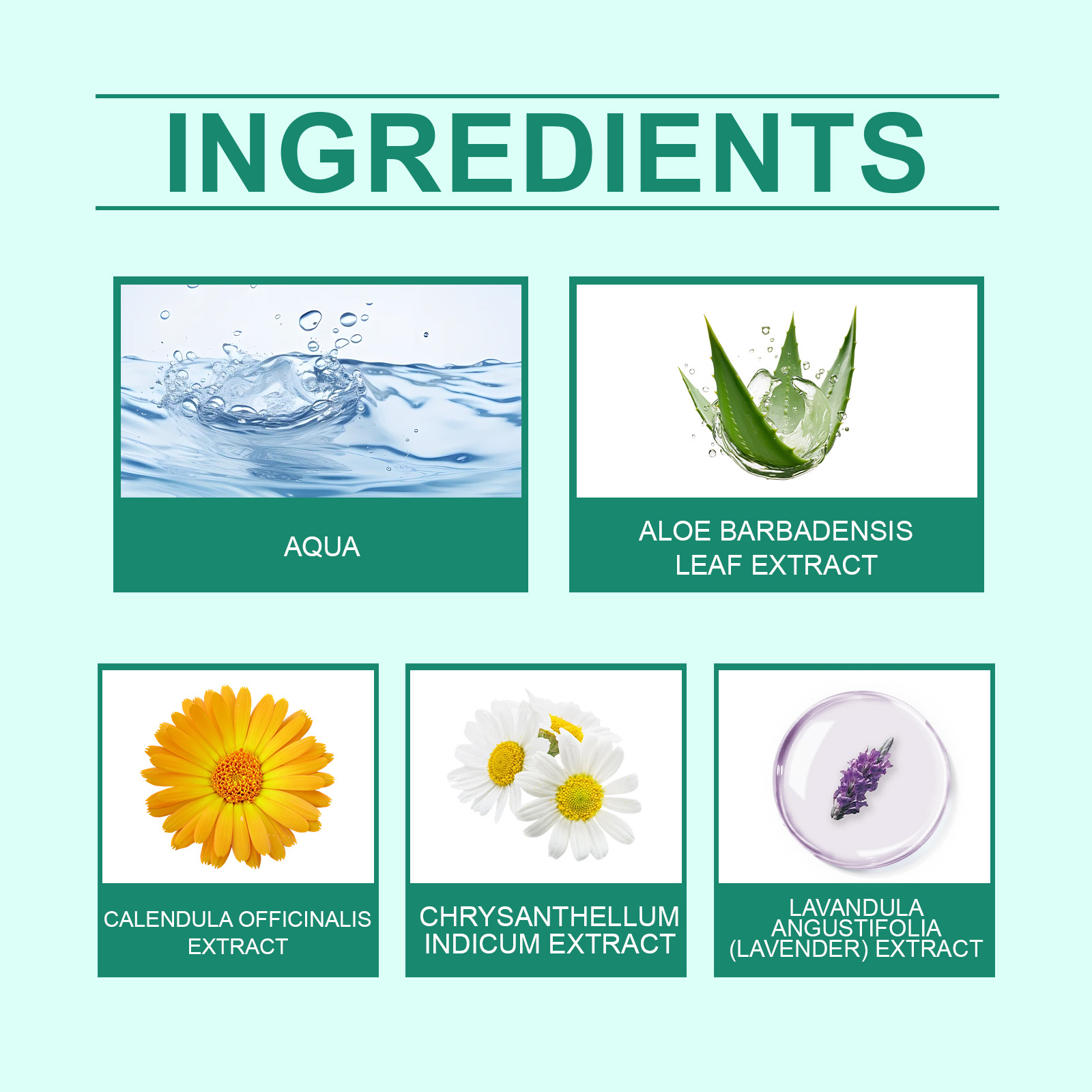 | 成分 | 芦荟叶提取物、金盏花提取物、洋甘菊提取物 |